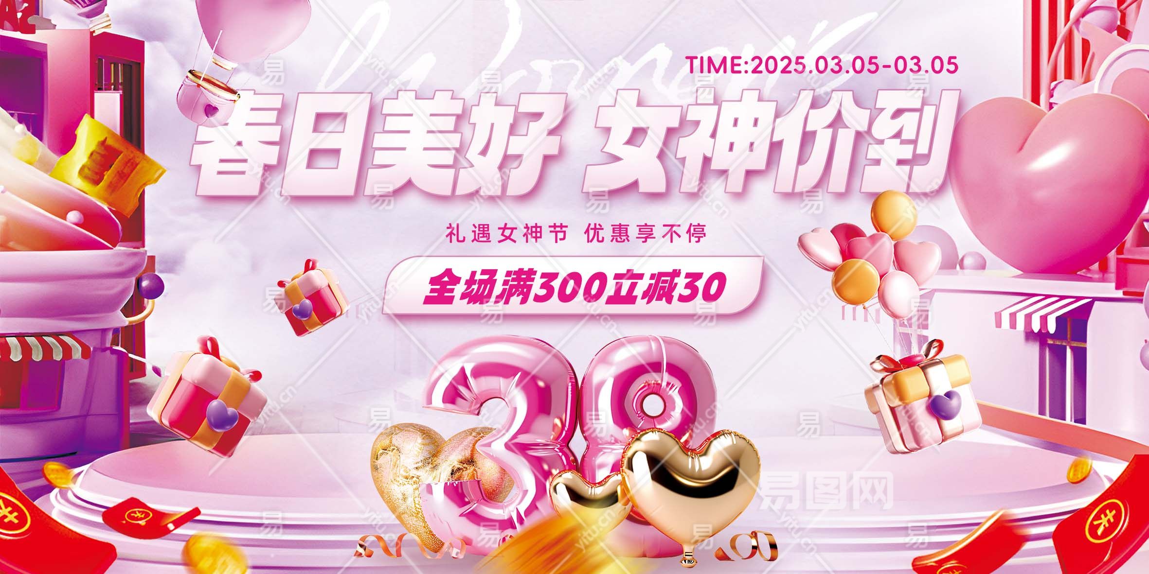 当前的位置:首页 > 广告设计 > 展板/展架 > 促销展板/展架 > 妇女节促销礼物盒爱心粉色简约展板