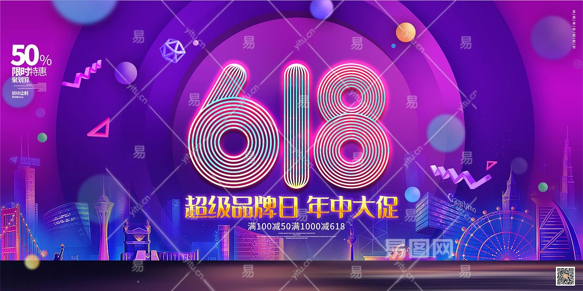 时尚渐变618年中大促超级品牌日促销宣传展板