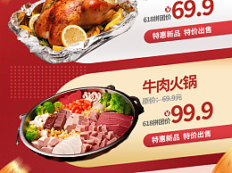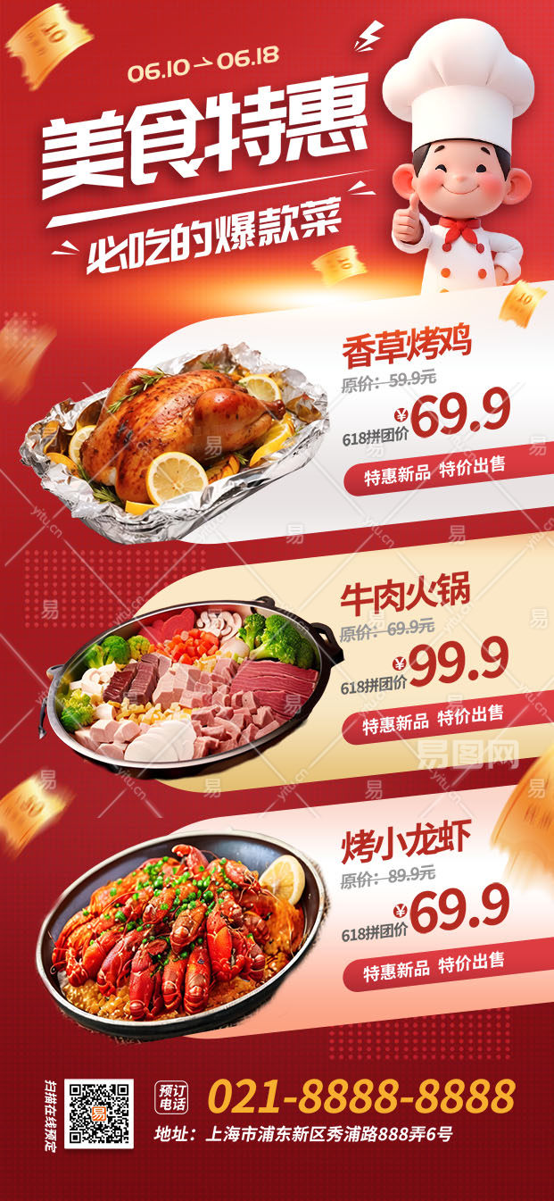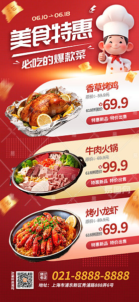 红色金色618美食活动促销优惠开业餐厅餐饮宣传展板