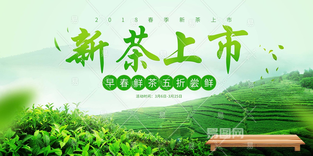 新茶上市清新春茶茶叶宣传促销活动展板