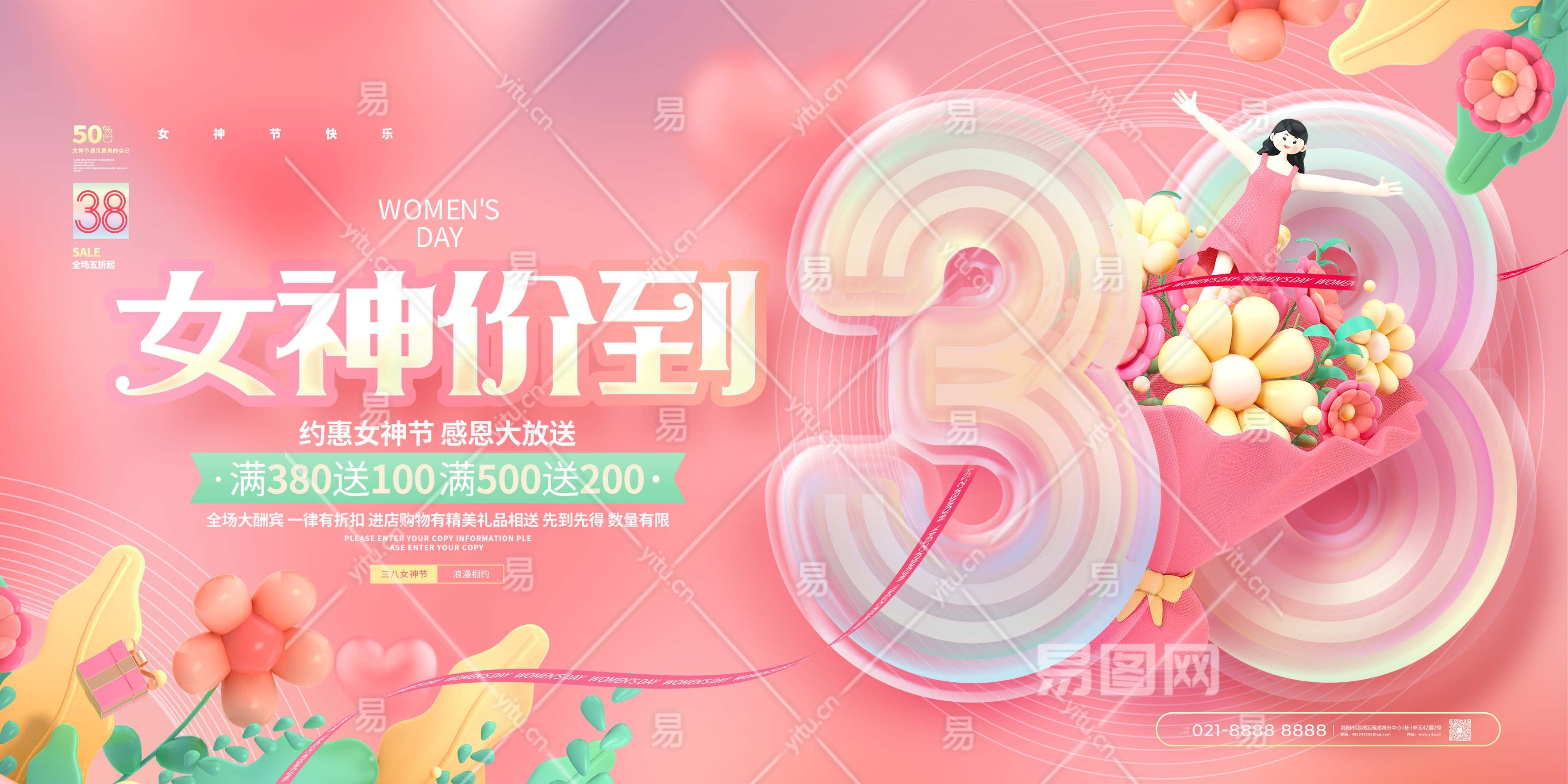 当前的位置:首页 > 广告设计 > 展板/展架 > 促销展板/展架 > 玻璃创意弥散风38女神节妇女节活动展板