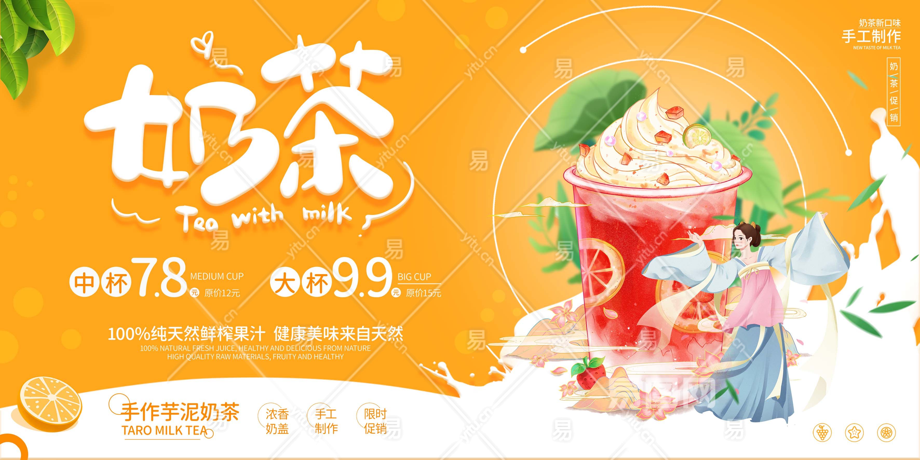 当前的位置:首页 > 广告设计 > 展板/展架 > 促销展板/展架 > 橙色简约风格奶茶促销活动展板