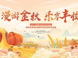 黄色插画秋天活动丰收展板秋季秋天促销活动展板
