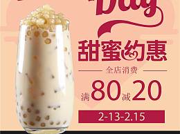 珍珠奶茶冷饮情人节促销宣传吊旗
