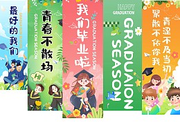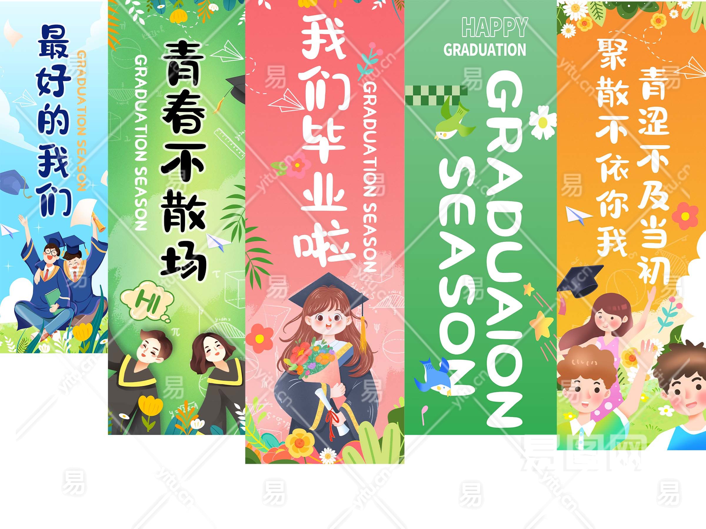 当前的位置:首页 > 广告设计 > 展板/展架 > 吊旗/道旗 > 彩色插画风格毕业毕业挂布吊旗毕业季