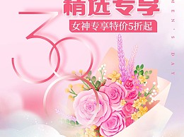粉色唯美妇女节女神节三八节女神节促销宣传吊旗海报38妇女节三八妇女节