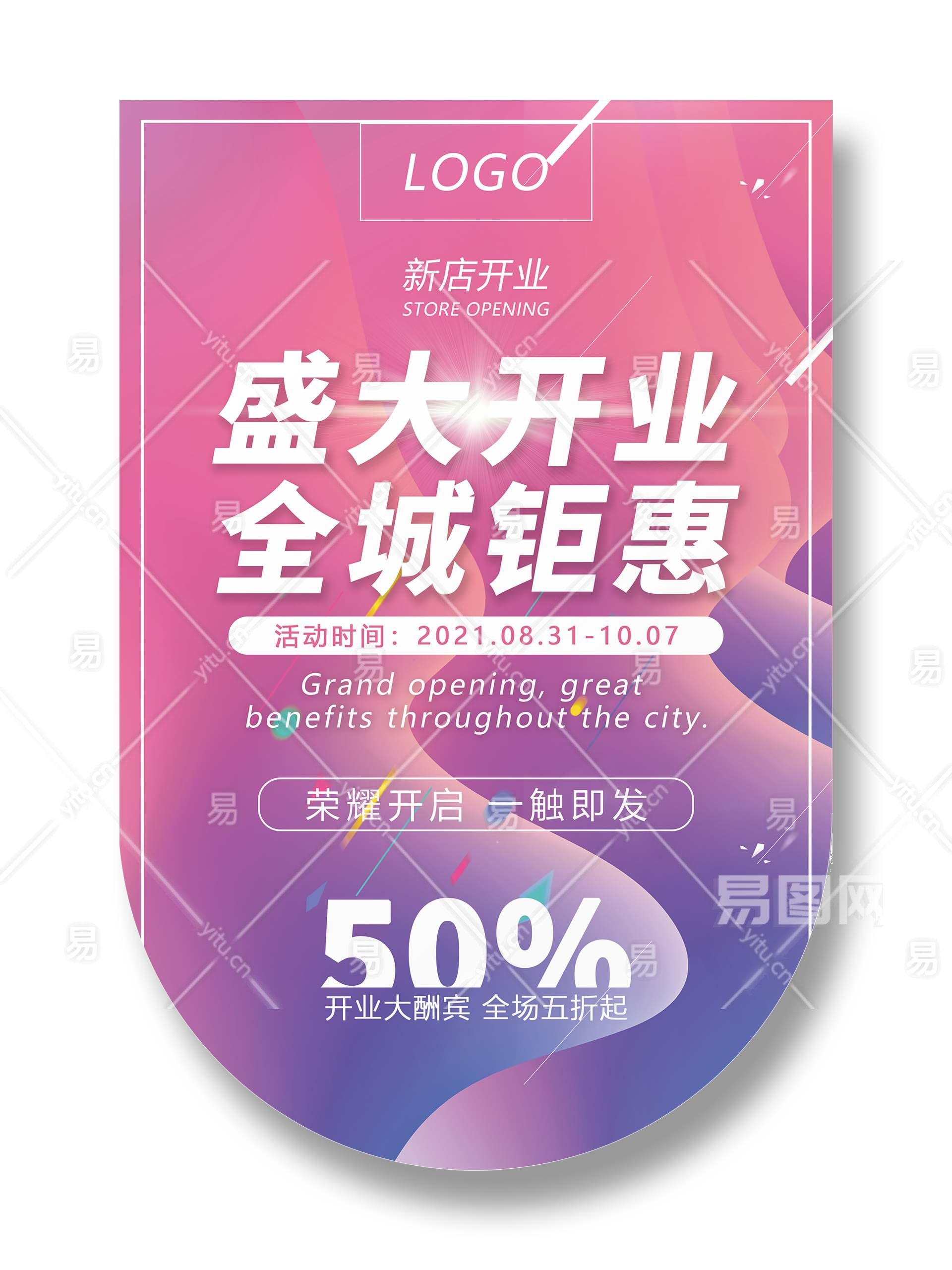 当前的位置:首页 > 广告设计 > 展板/展架 > 吊旗/道旗 > 粉色渐变开业大吉全城优惠道旗