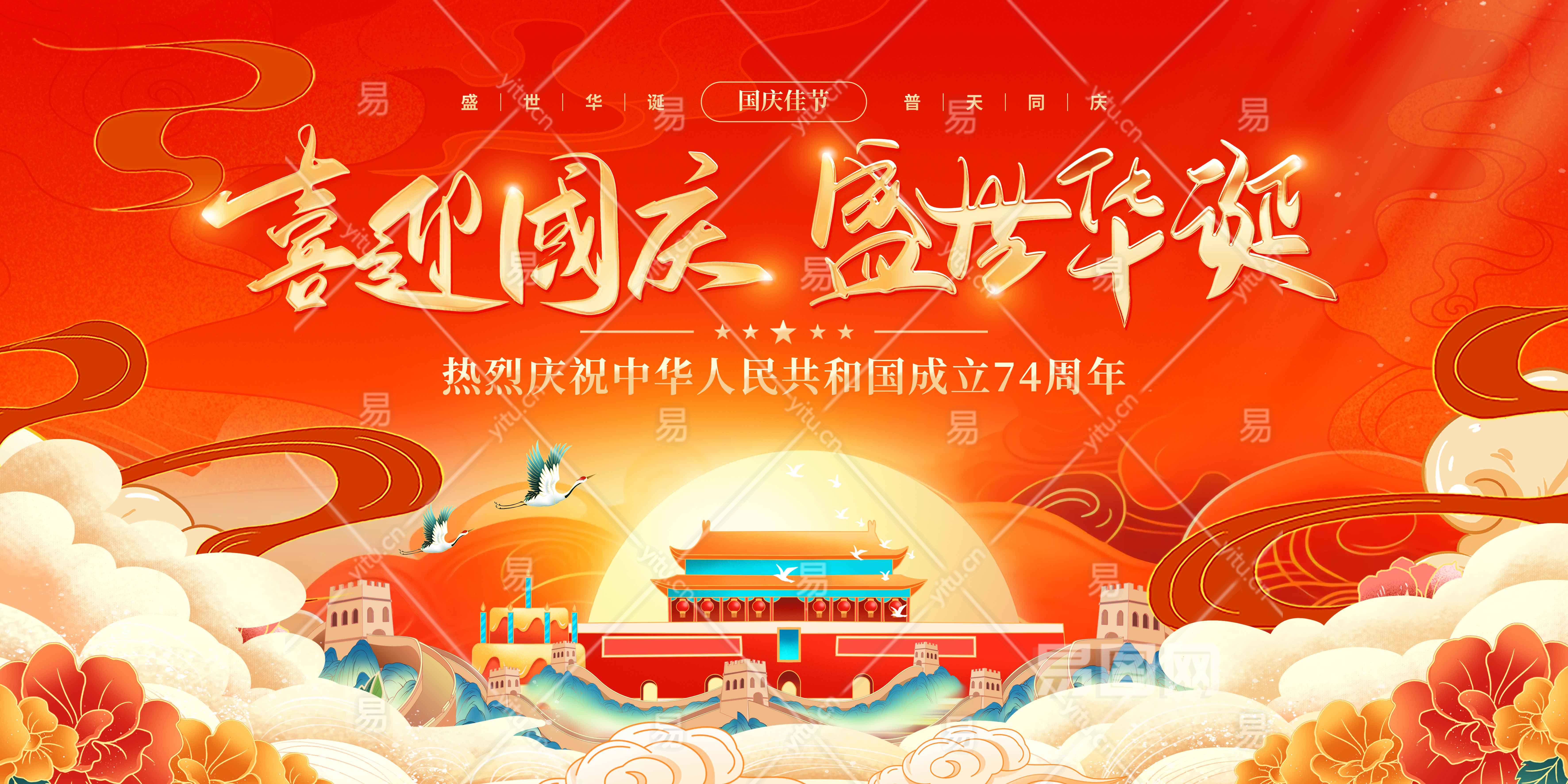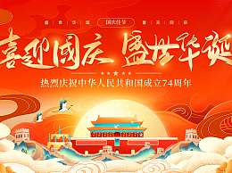 红色大气举国同庆盛世中华国庆节74周年宣传展板国庆节国庆