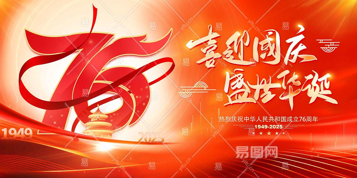 红色大气国庆节76周年宣传展板国庆节国庆