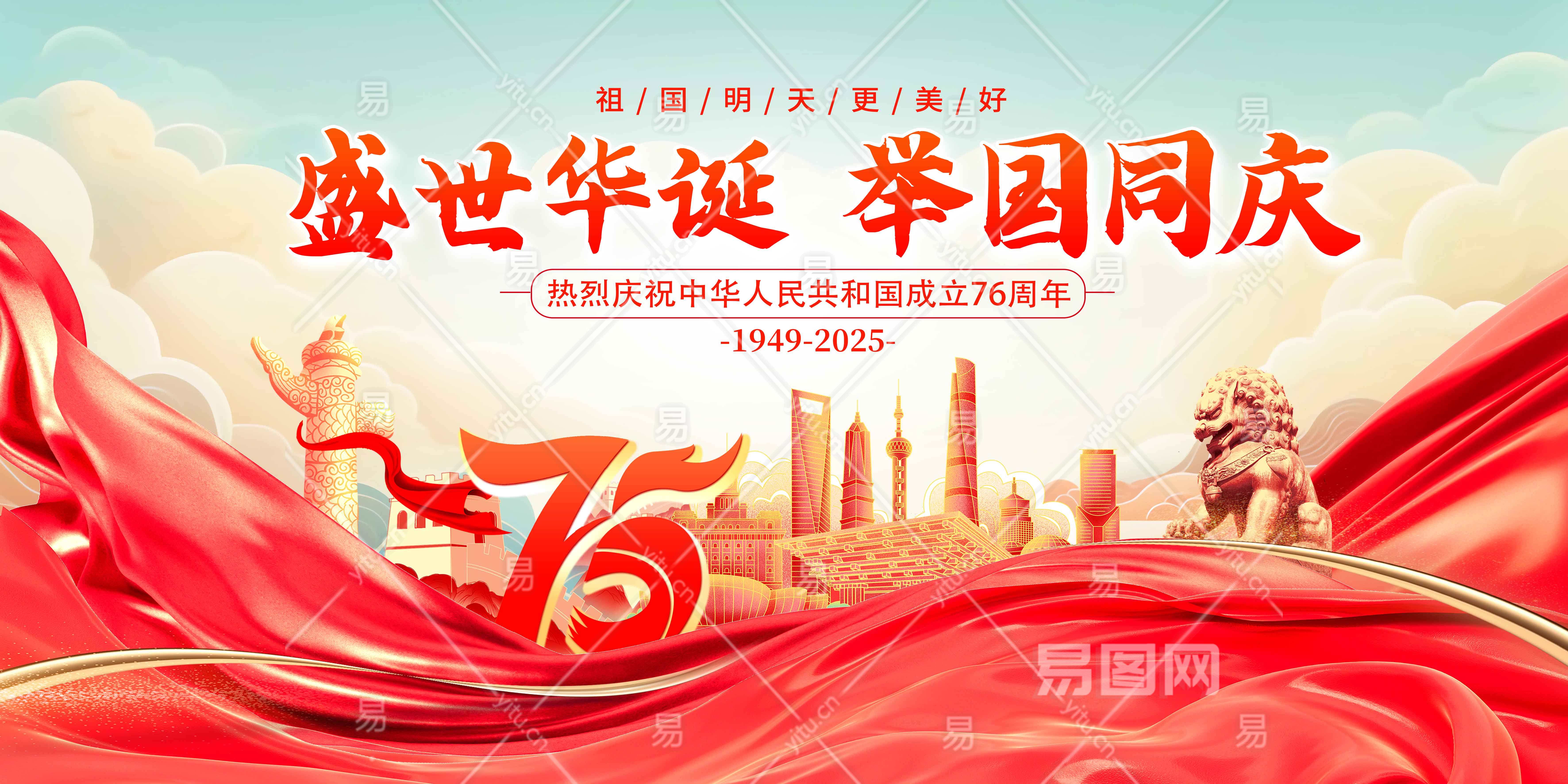 红色时尚盛世华诞举国同庆国庆节国庆展板设计