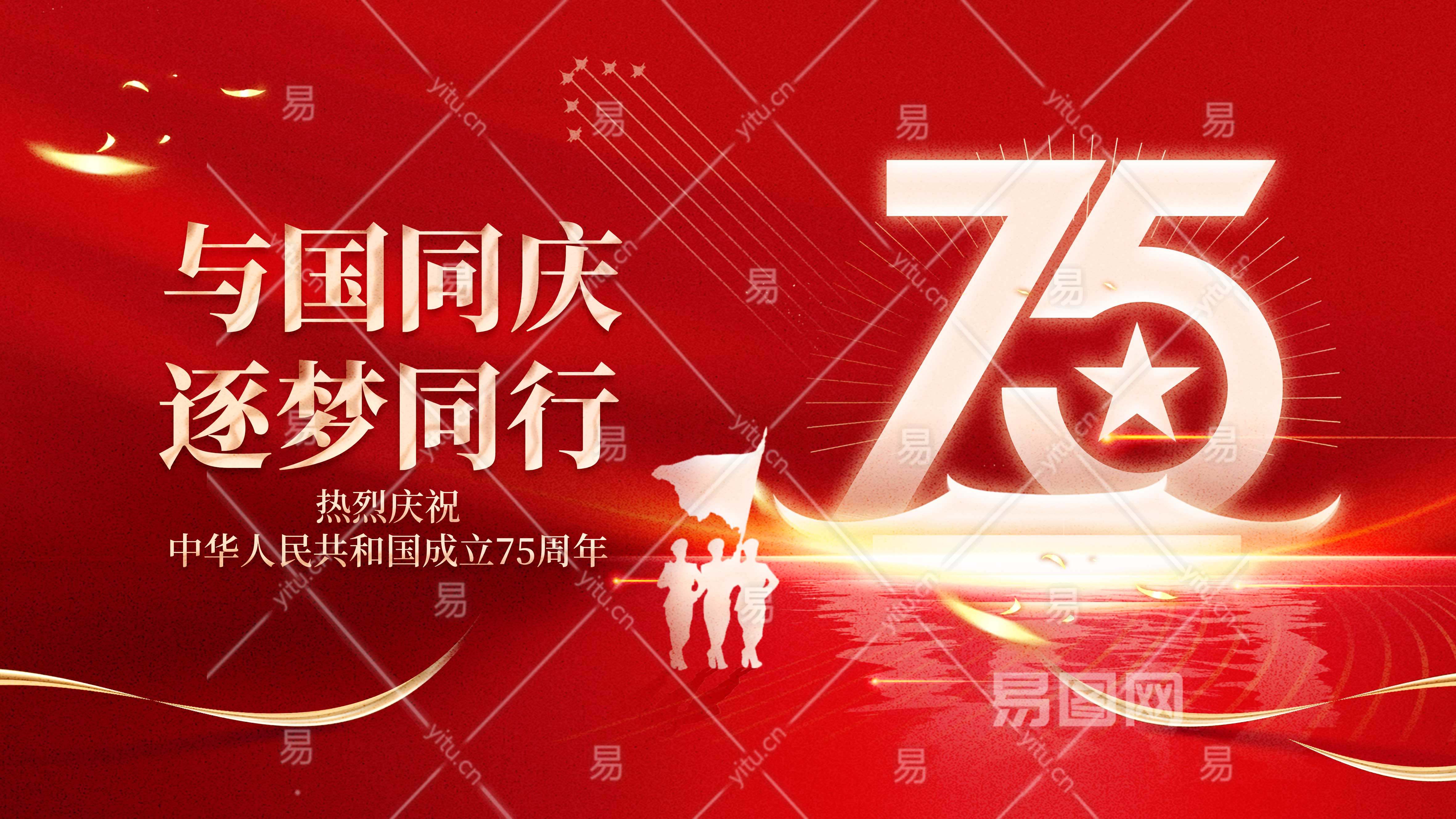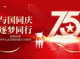 红色质感创意房地产建国75周年国庆节展板