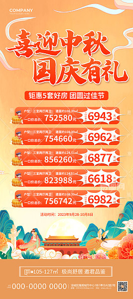 橙红色国潮喜迎中秋国庆有礼国庆节促销展架