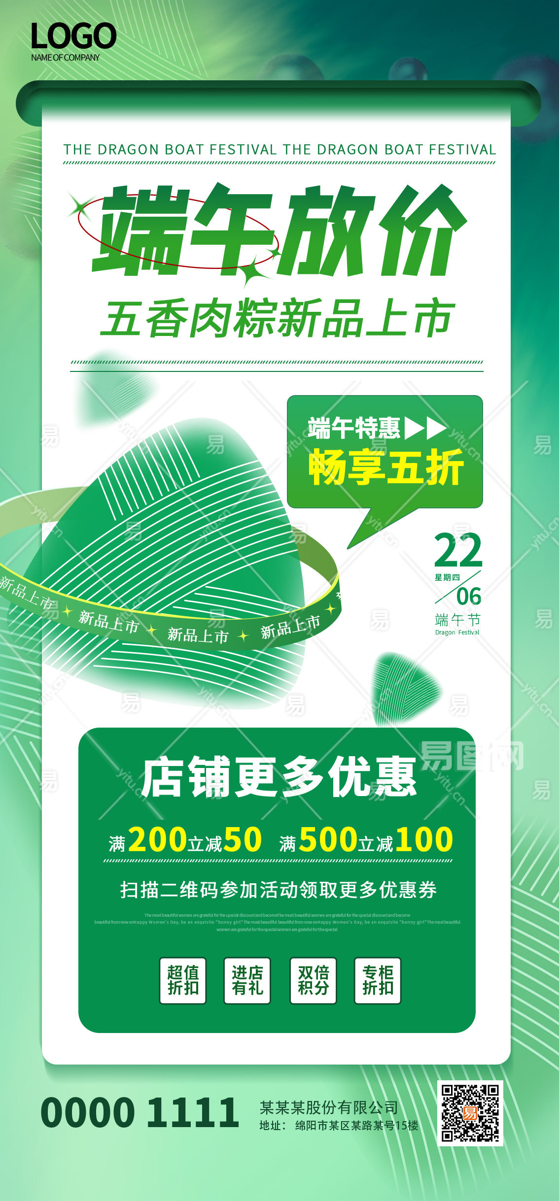 绿色端午节海报宣传展板放价活动促销元素材新品上市