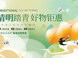 绿清新清明节长虹玻璃风活动整套视觉物料宣传展板