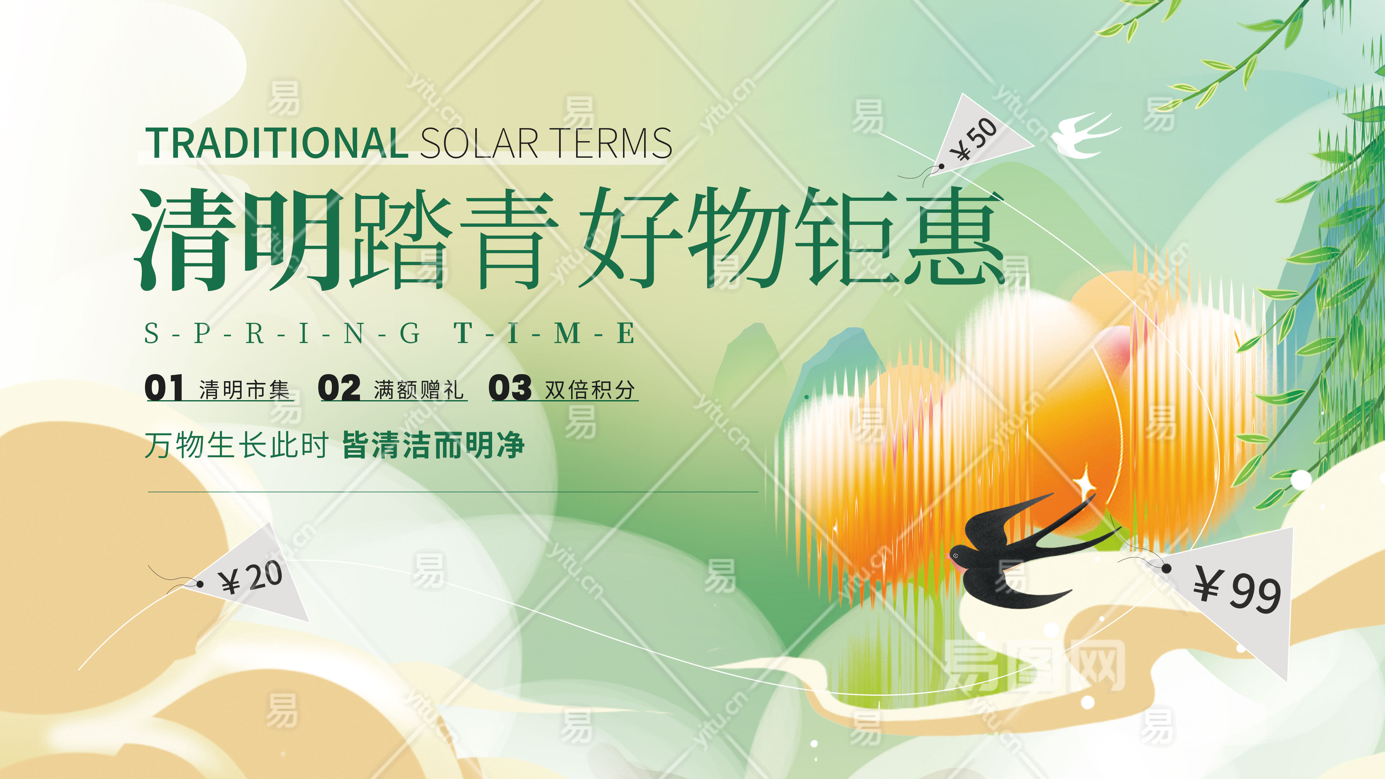 当前的位置:首页 > 广告设计 > 展板/展架 > 节日展板/展架 > 绿清新清明节长虹玻璃风活动整套视觉物料宣传展板