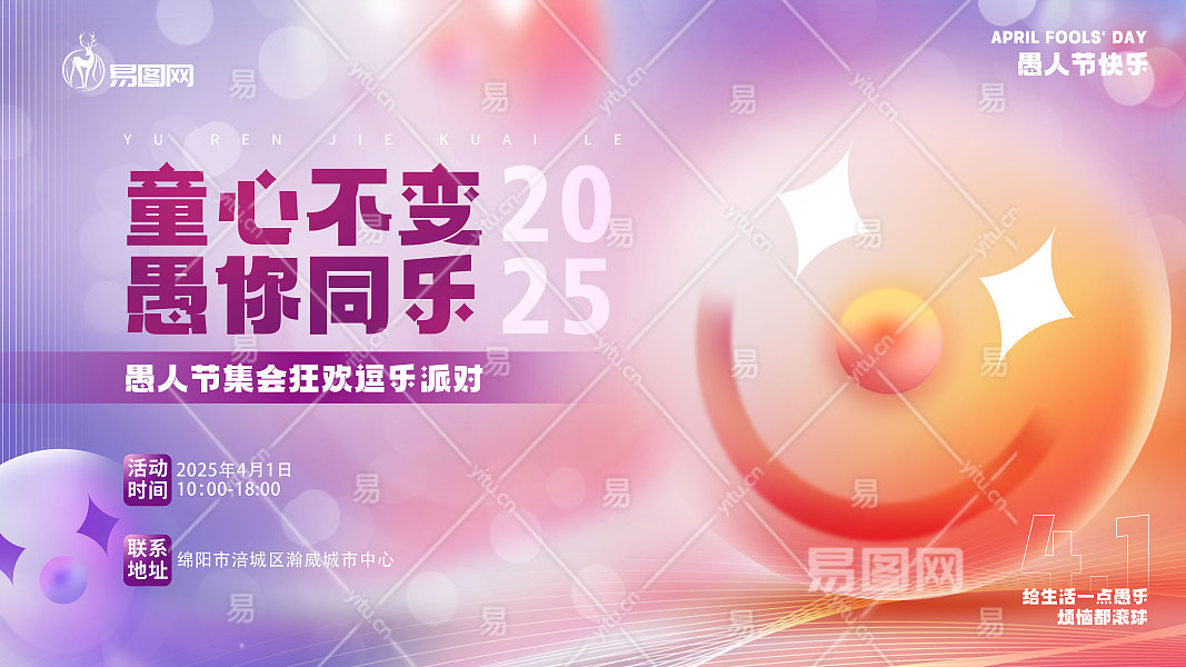 橙浅紫愚人节活动弥散风整套物料展板设计