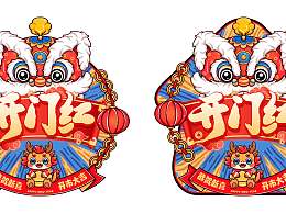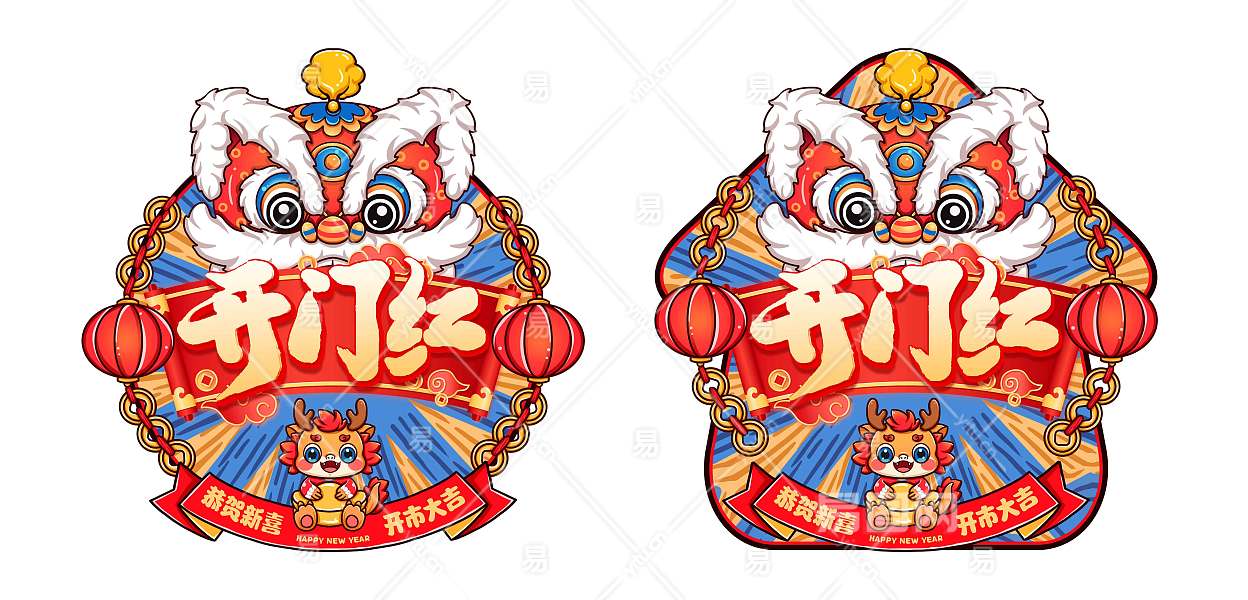 红蓝国潮开门红恭贺新喜开市大吉2024开门红地贴新年龙年新年开门红地贴