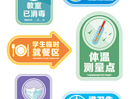 蓝绿黄紫卡通学校校园防疫指示标签地贴