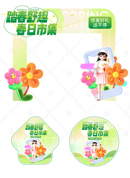 当前的位置:首页 > 广告设计 > 展板/展架 > 门头/地贴 > 绿色黄色春日市集AIGC门头地贴模板