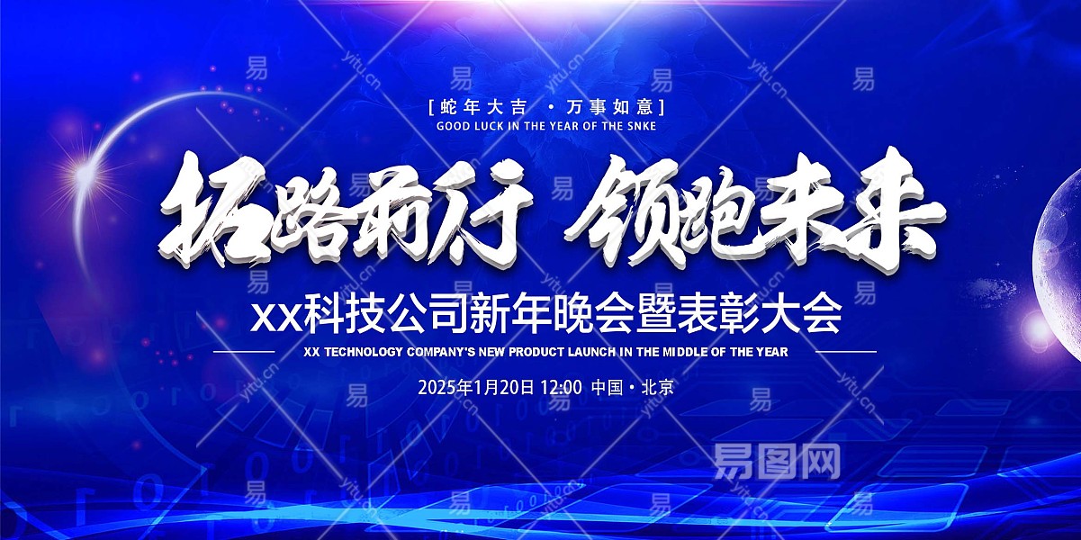 当前的位置:首页 > 广告设计 > 展板/展架 > 企业展板/展架 > 蓝色拓路前行领跑未来企业年会展板
