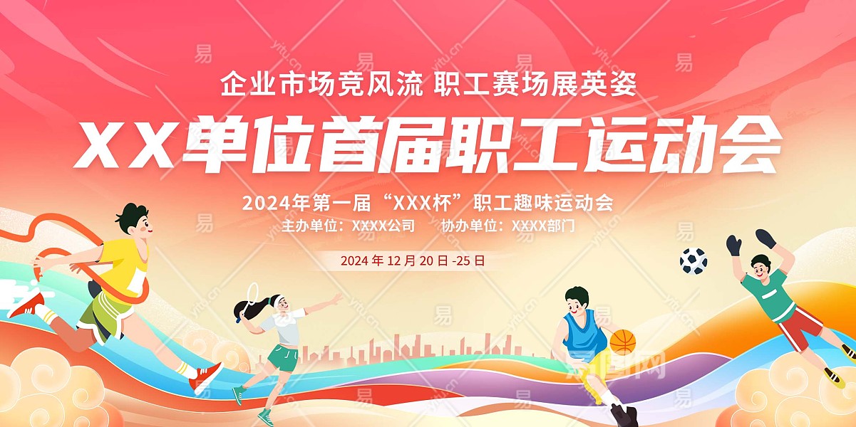 时尚插画风大气单位职工运动会宣传展板