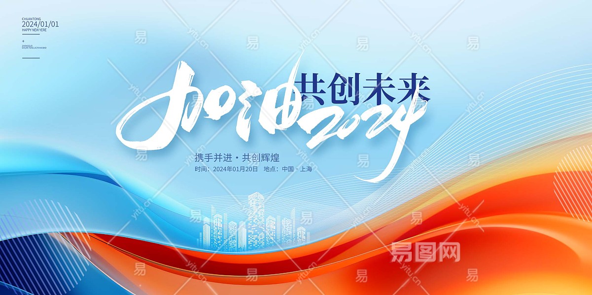当前的位置:首页 > 广告设计 > 展板/展架 > 企业展板/展架 > 蓝色时尚加油2024年会新年展板