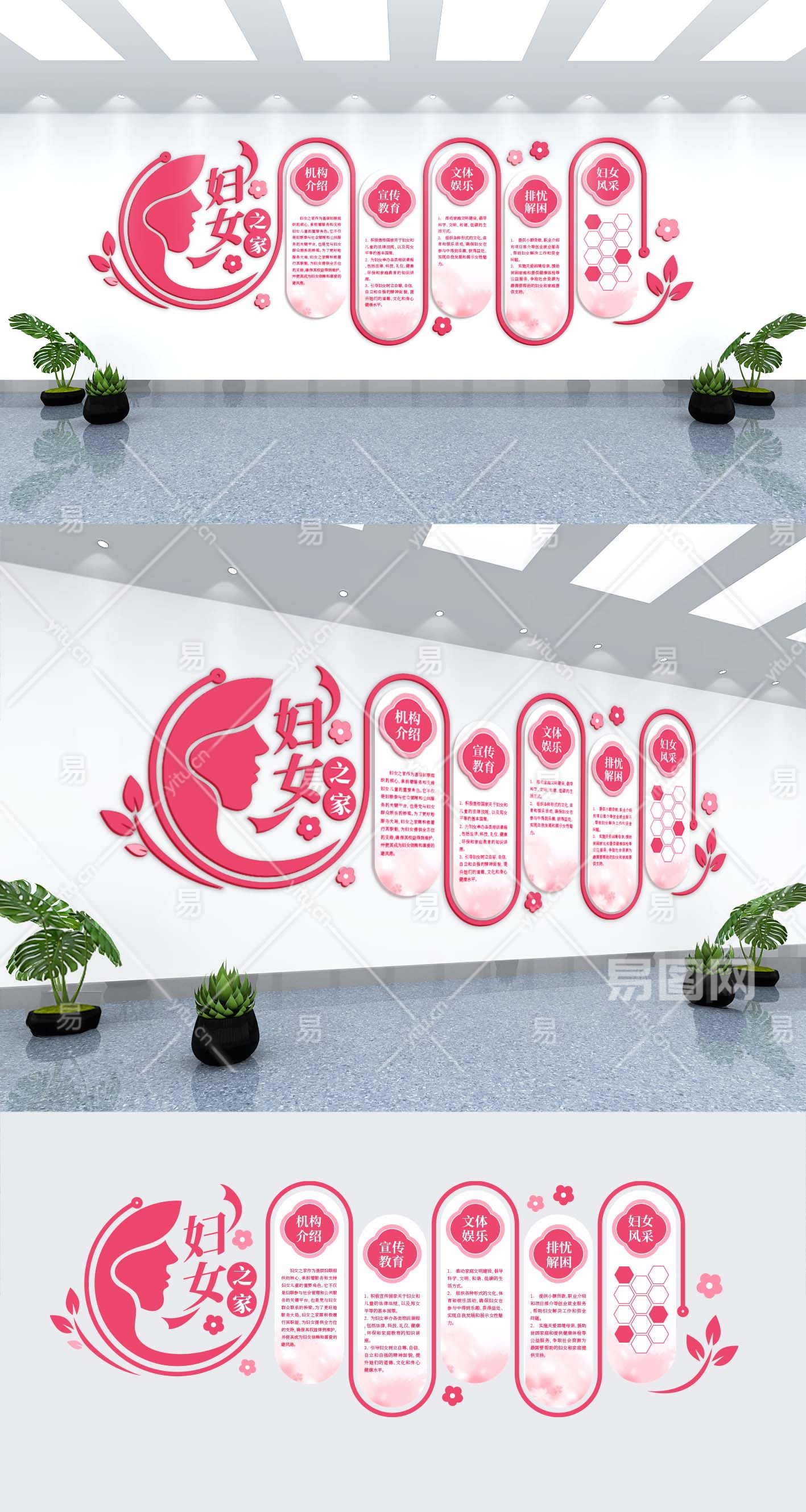 粉色大气清新巾帼典范妇女之家文化墙
