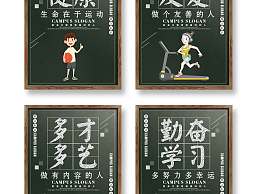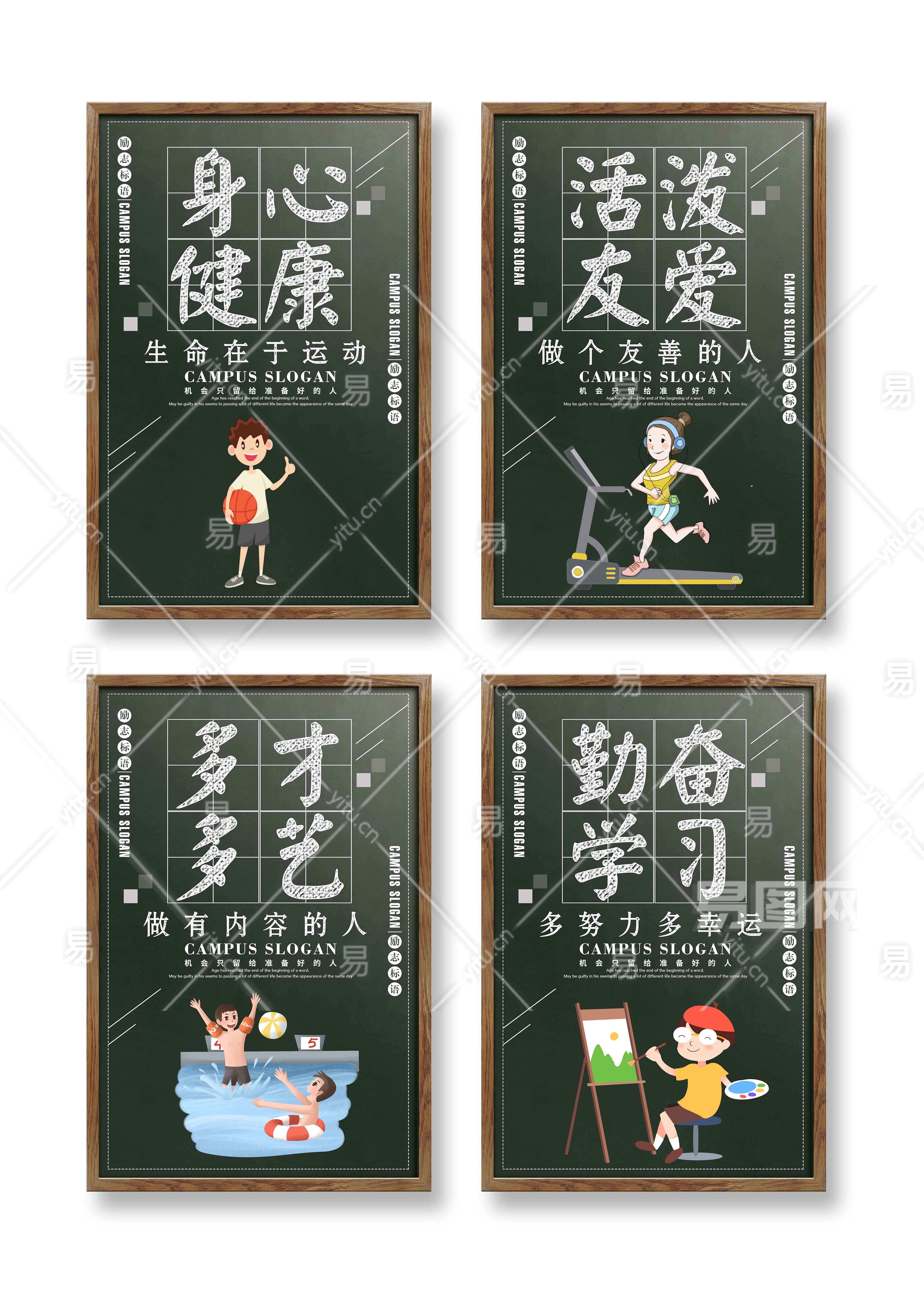 当前的位置:首页 > 广告设计 > 展板/展架 > 学校展板/展架 > 墨绿创意卡通校园励志标语四件套展板
