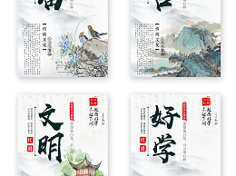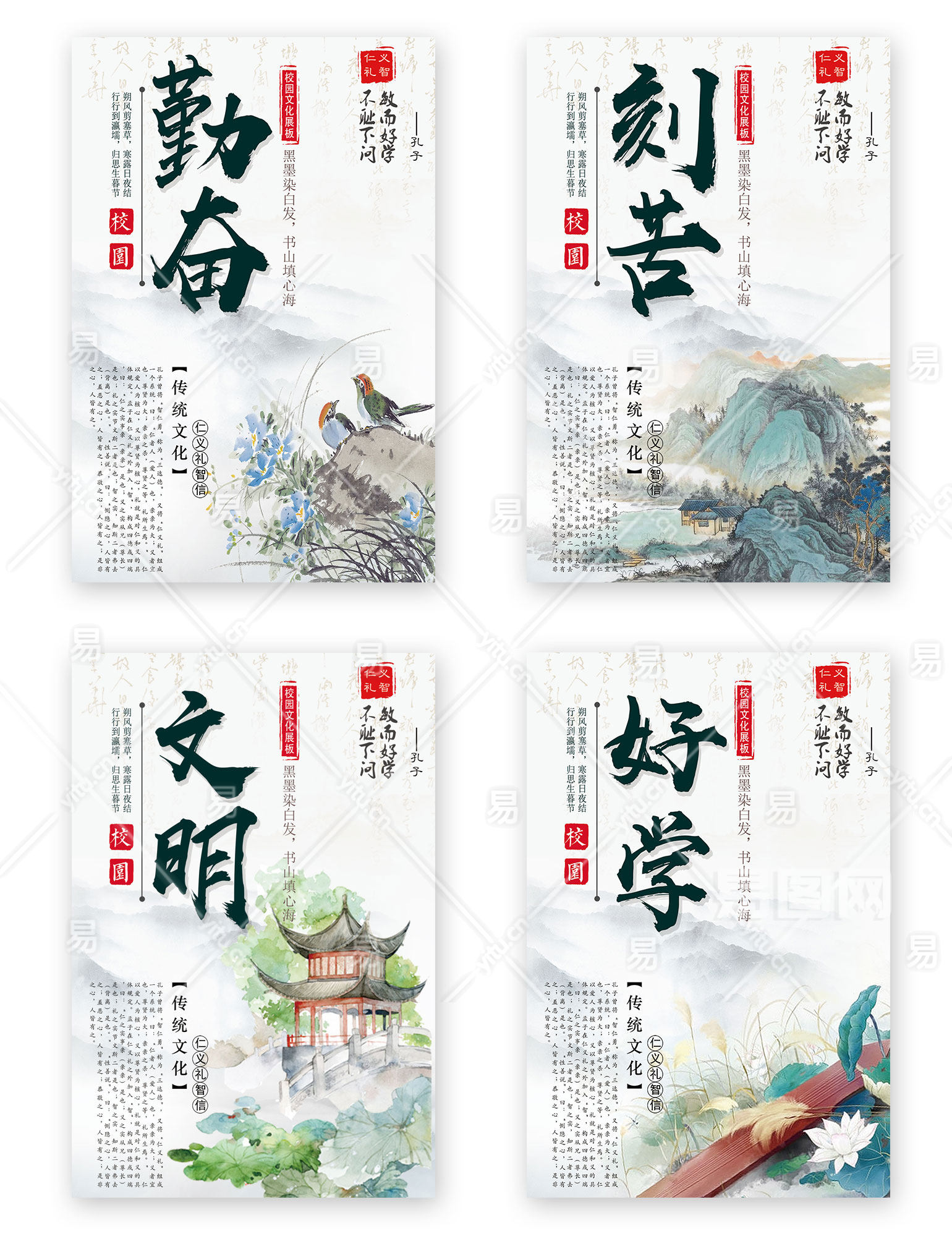 米色水墨中国风校园文化宣传礼仪挂画展板设计
