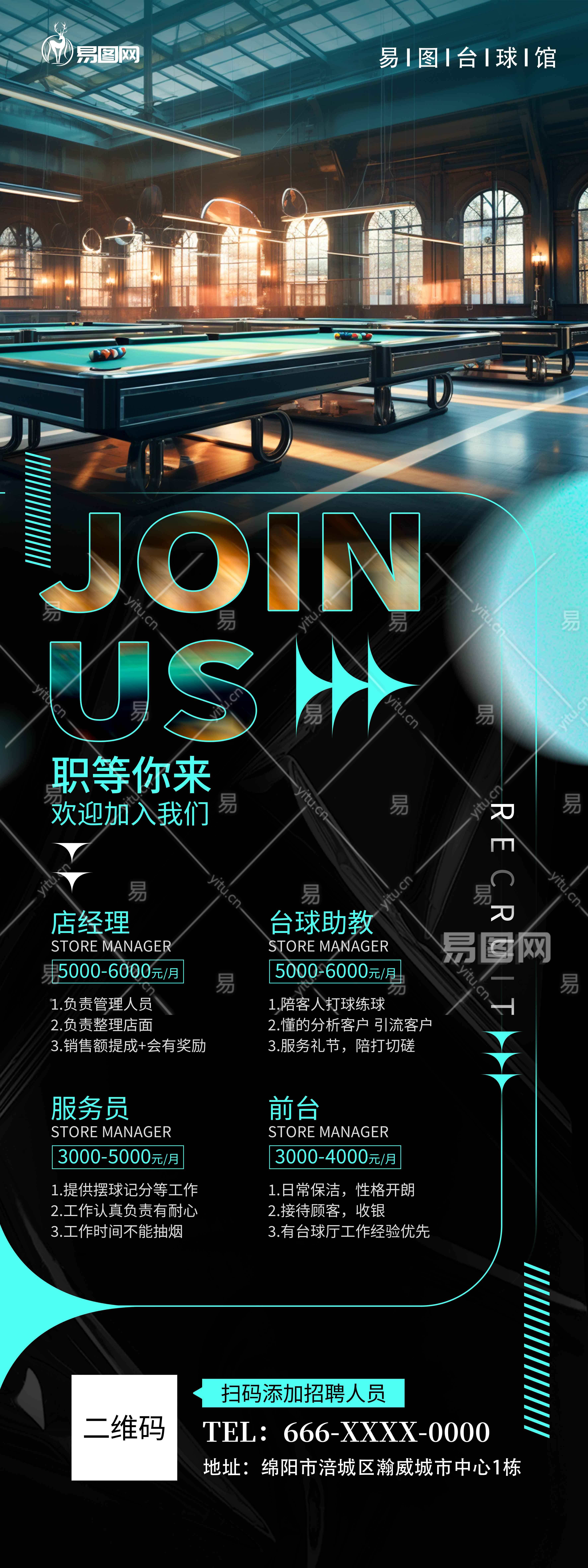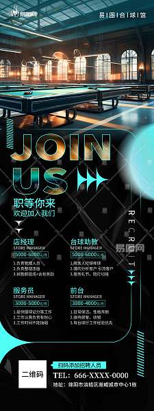 当前的位置:首页 > 广告设计 > 展板/展架 > 易拉宝/X展架 > 黑蓝台球馆会所招聘展架易拉宝