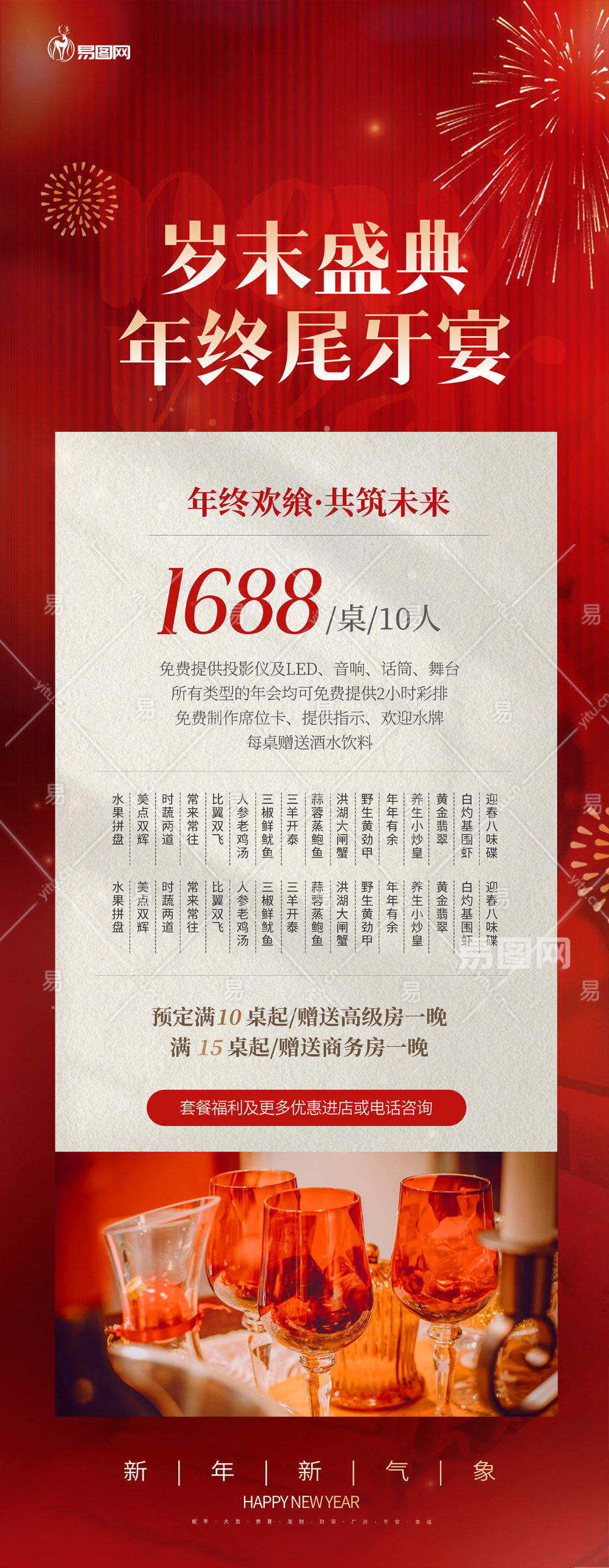 红色2025年会公司尾牙宴年夜饭餐饮预定展架