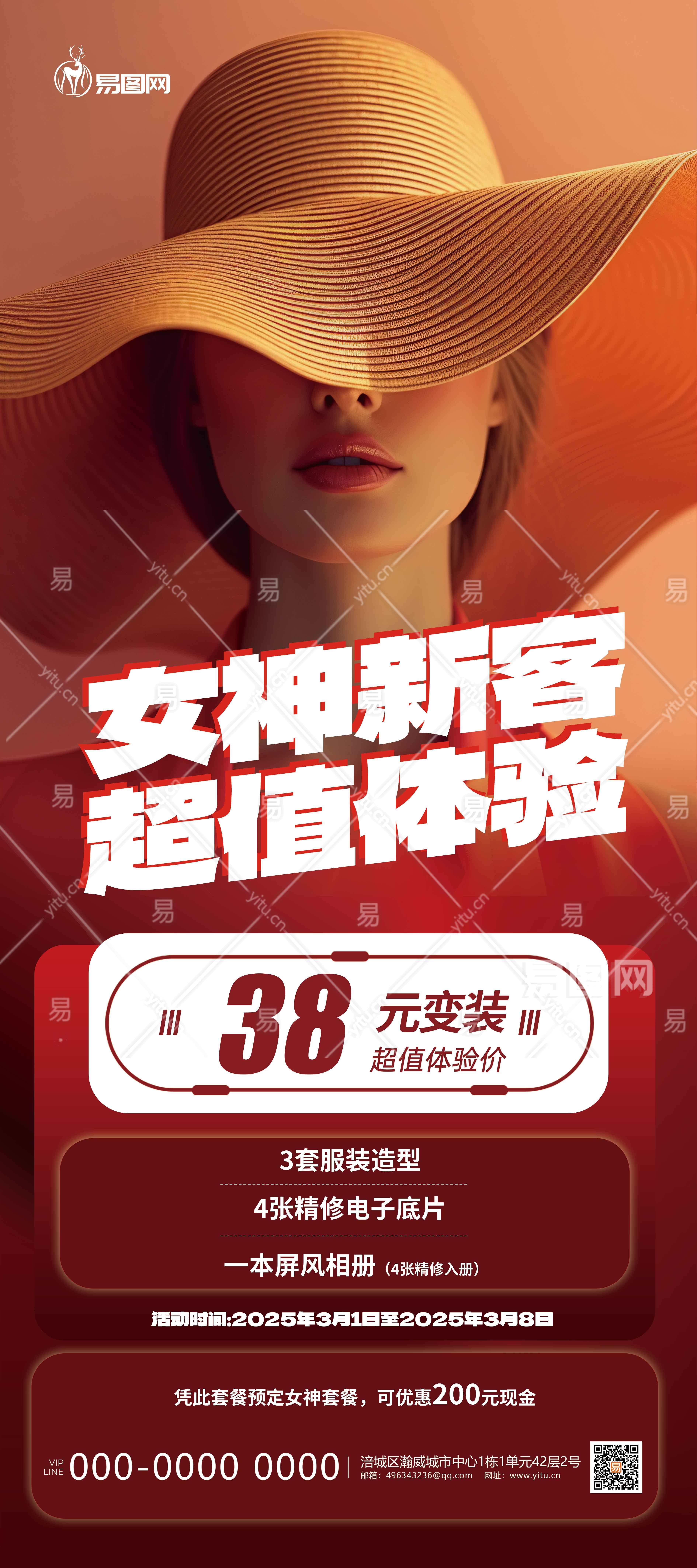 红色妇女节摄影女神照片简约大气展架立屏展架图片