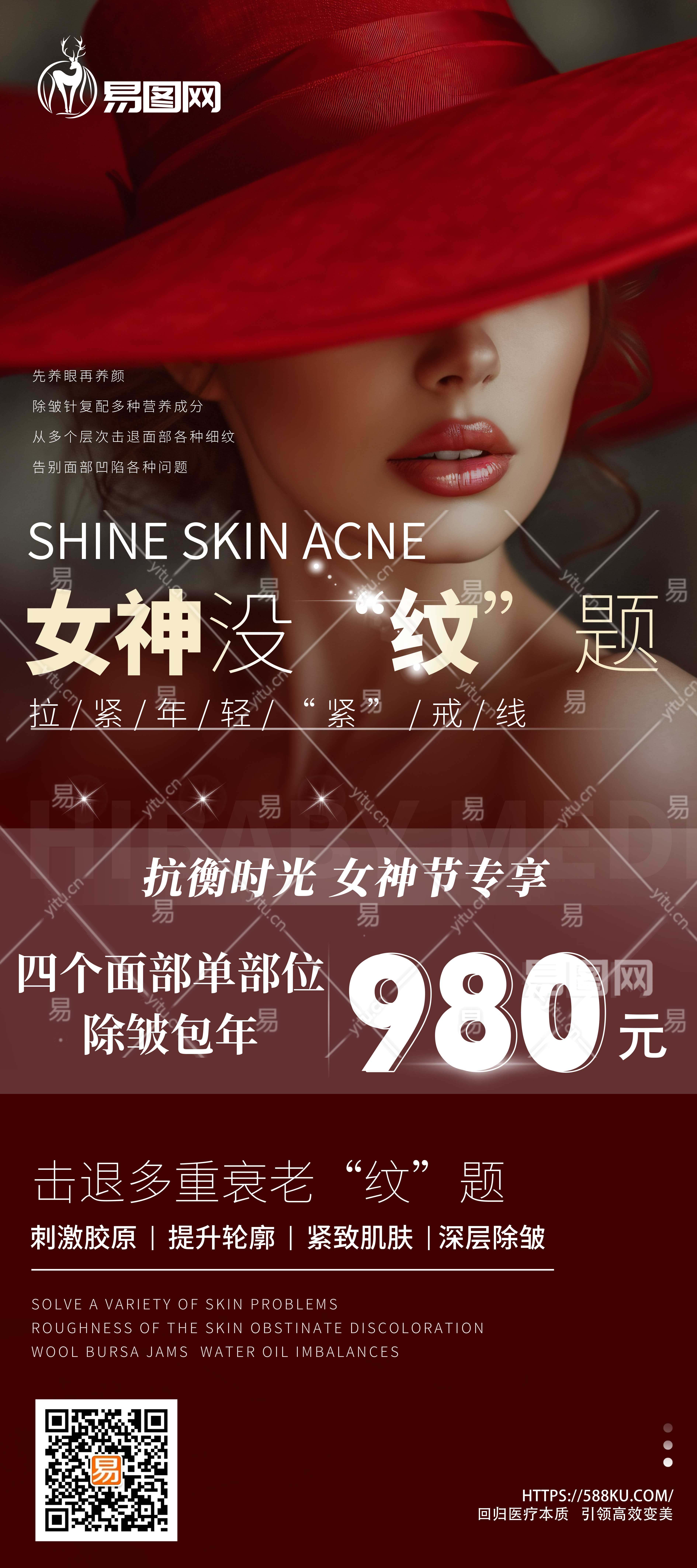 红色妇女节医美女神摄影图赫本风高端展架宣传展架图片
