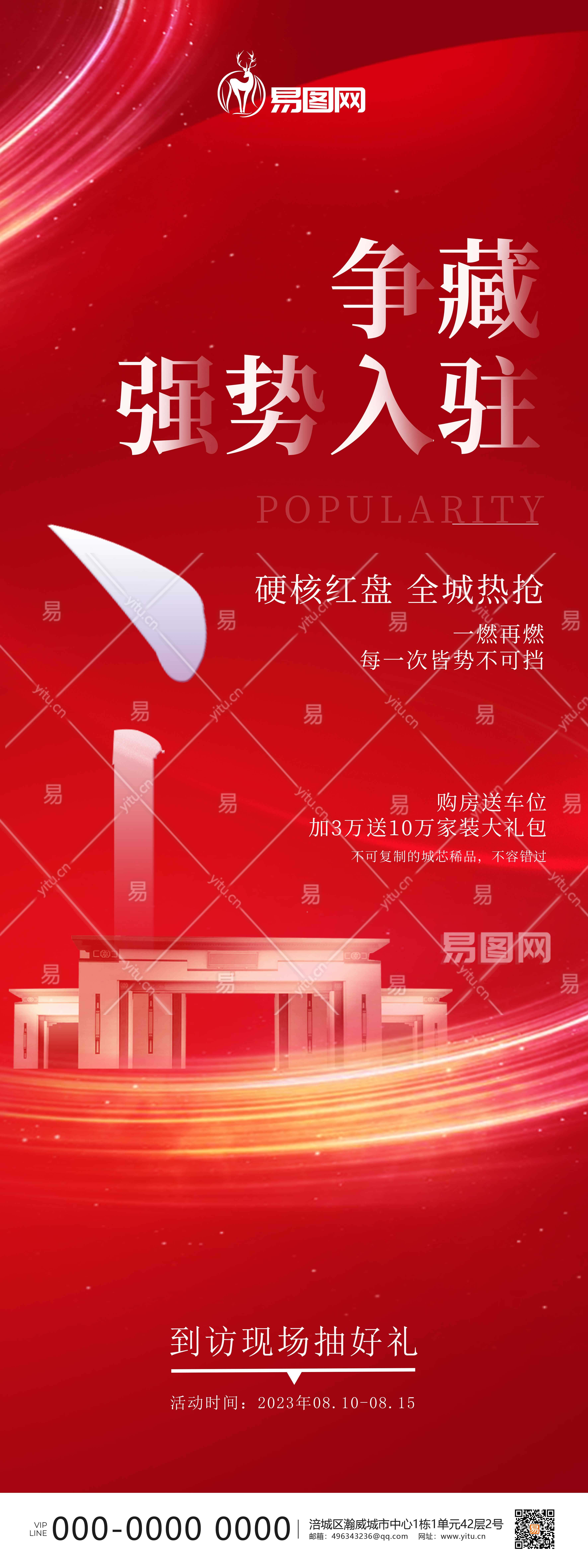 红色红色房地产强势入驻活动宣传展架易拉宝