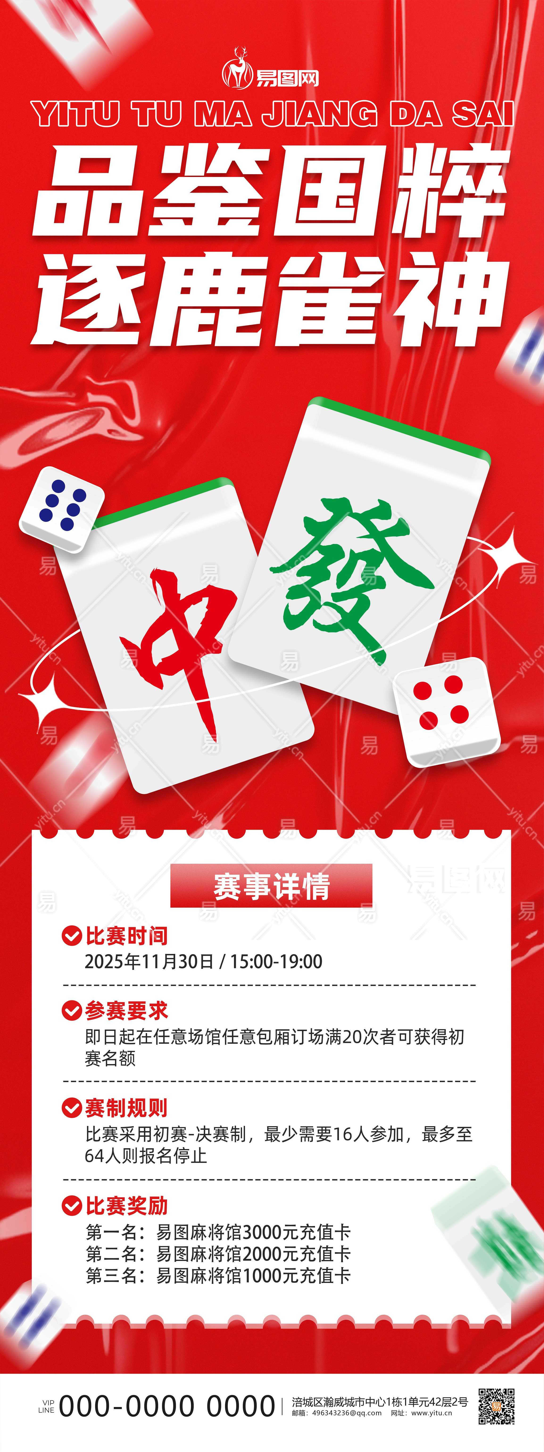 红色红色酸性麻将馆麻将大赛展架易拉宝