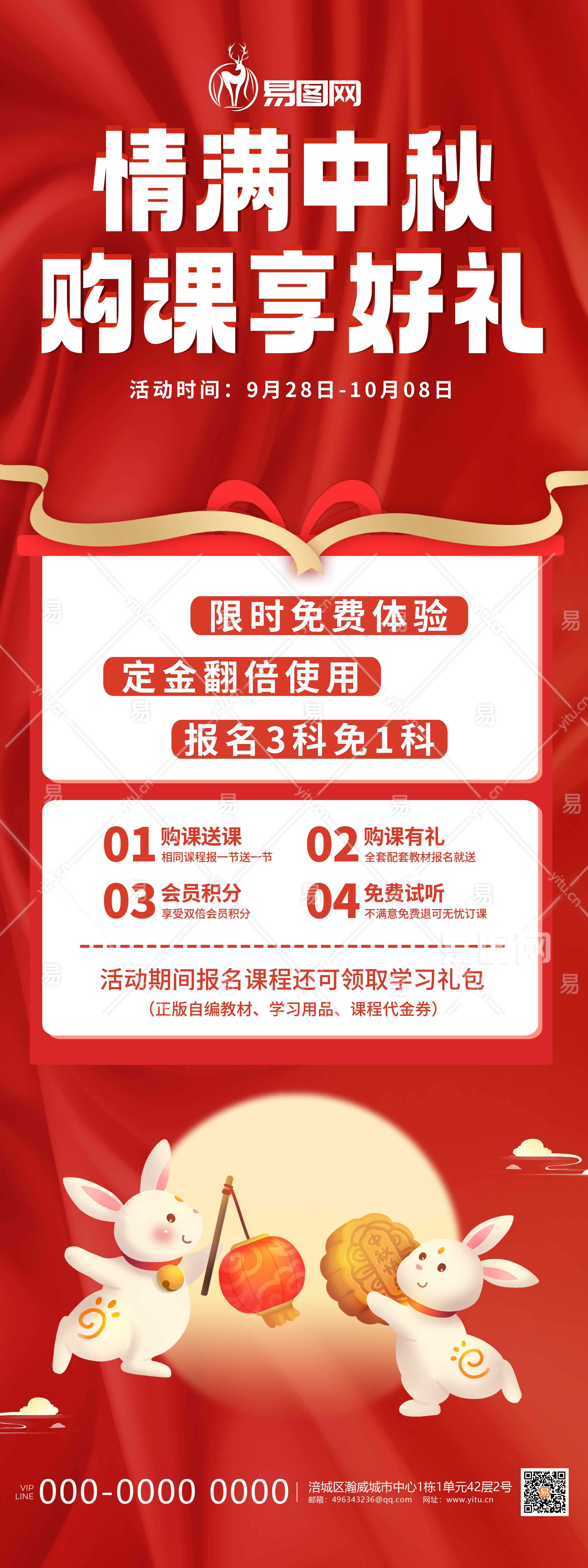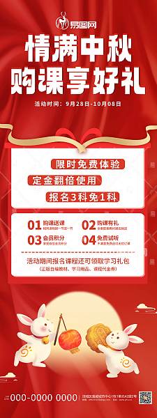 红色简约中秋节课程促销活动展架易拉宝