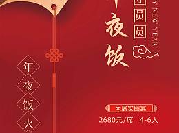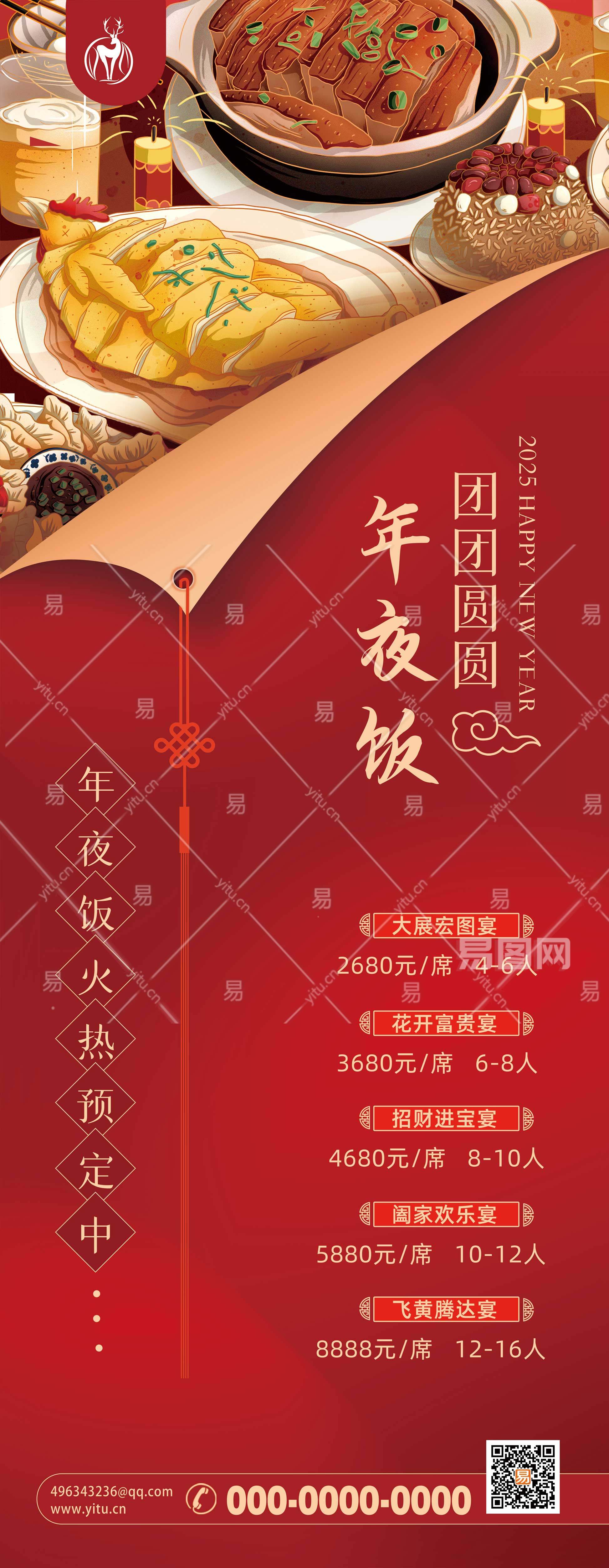 红色喜庆2025年蛇年年夜饭易拉宝X展架