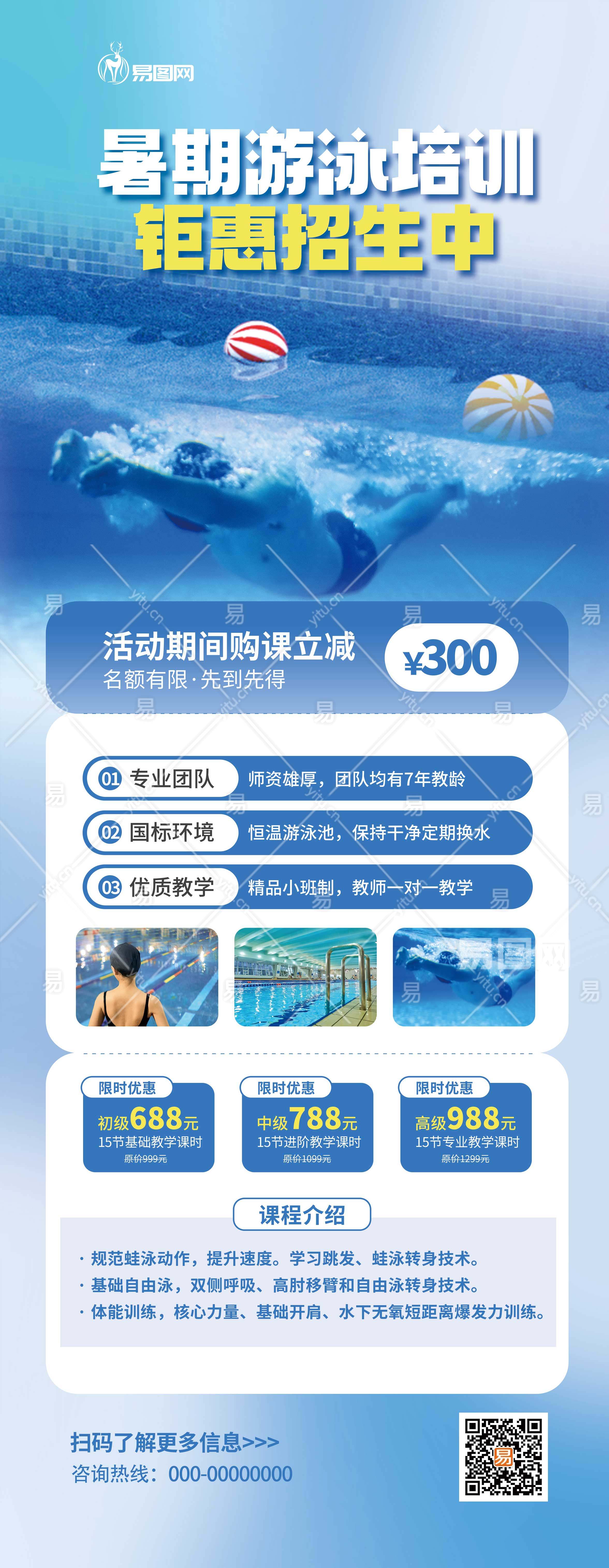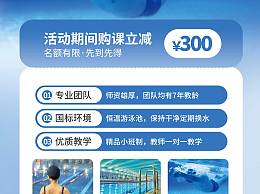 蓝色夏季暑期游泳馆培训班促销易拉宝展架