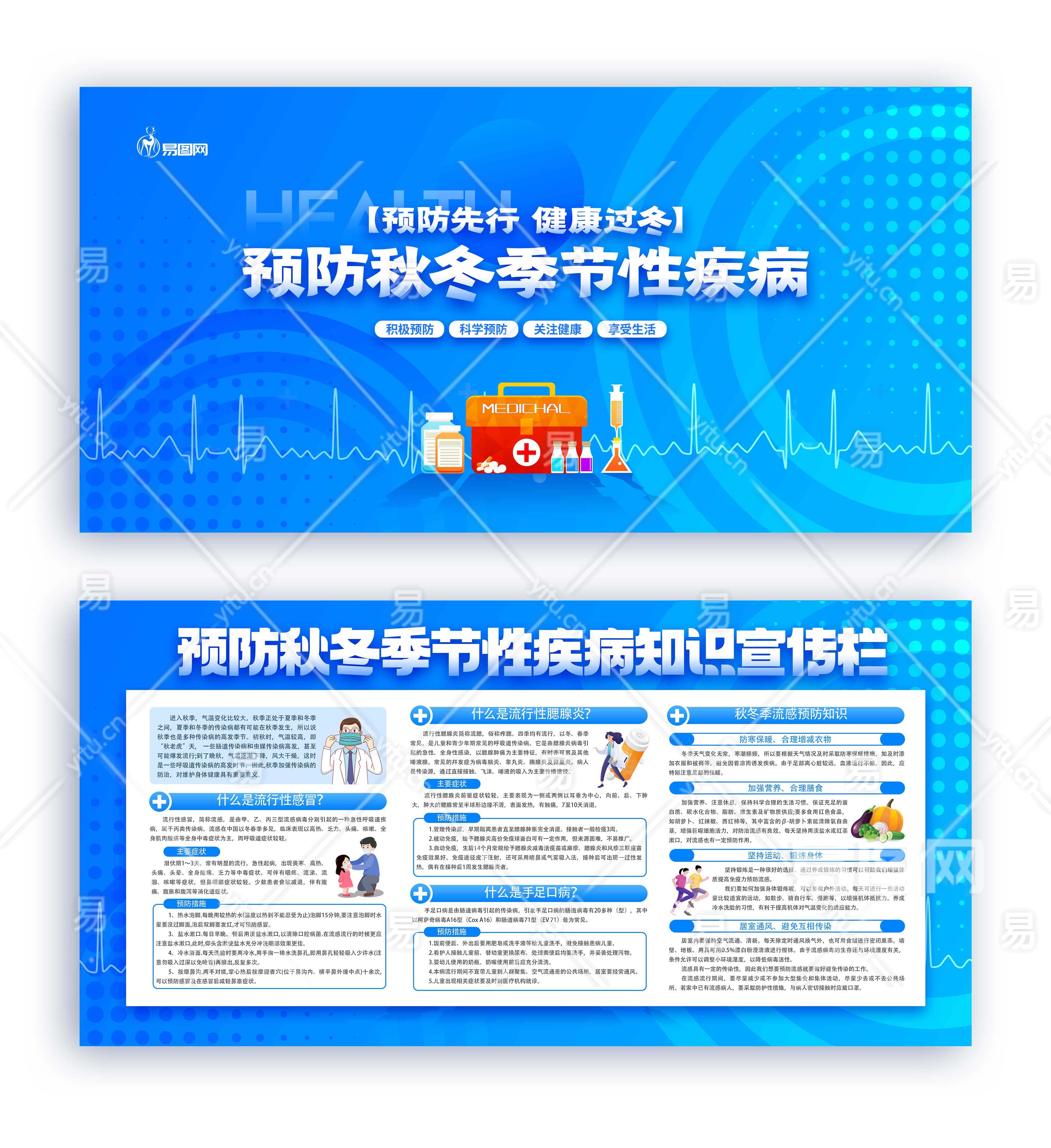 当前的位置:首页 > 广告设计 > 展板/展架 > 医疗卫生展板/展架 > 蓝色预防秋冬季流行病医疗展板二件套