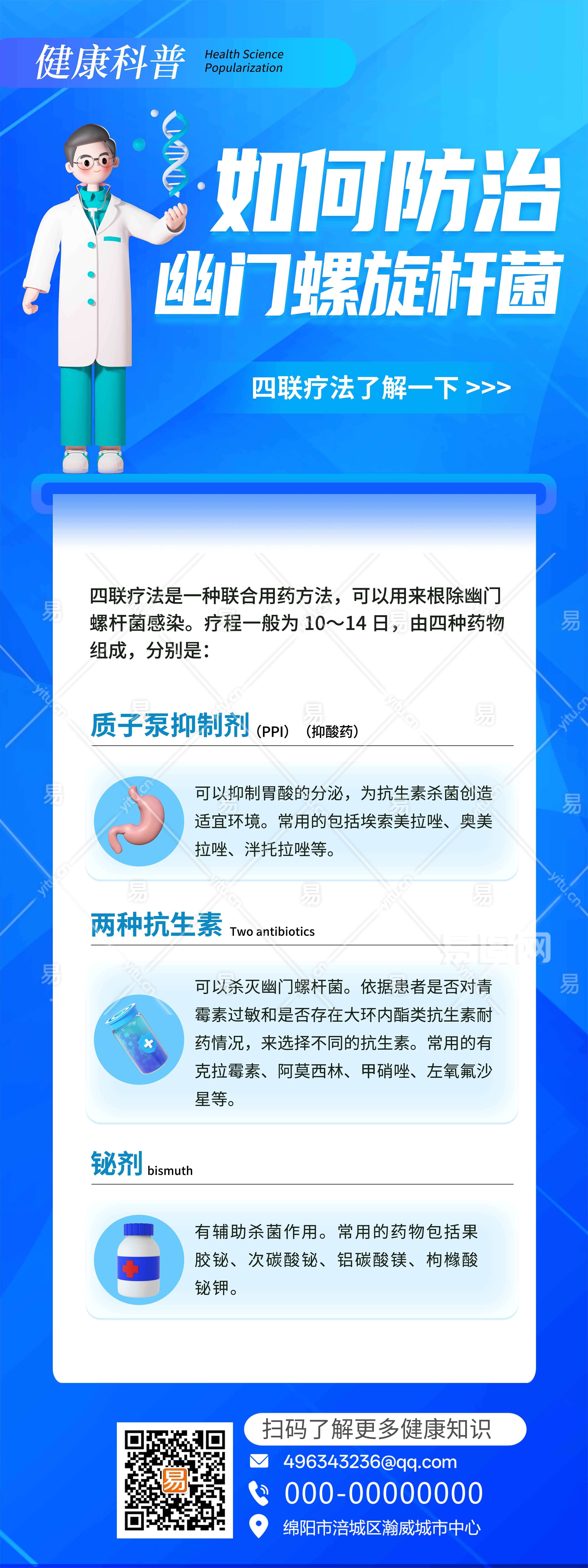 蓝色简约医疗幽门螺旋杆知识科普展架