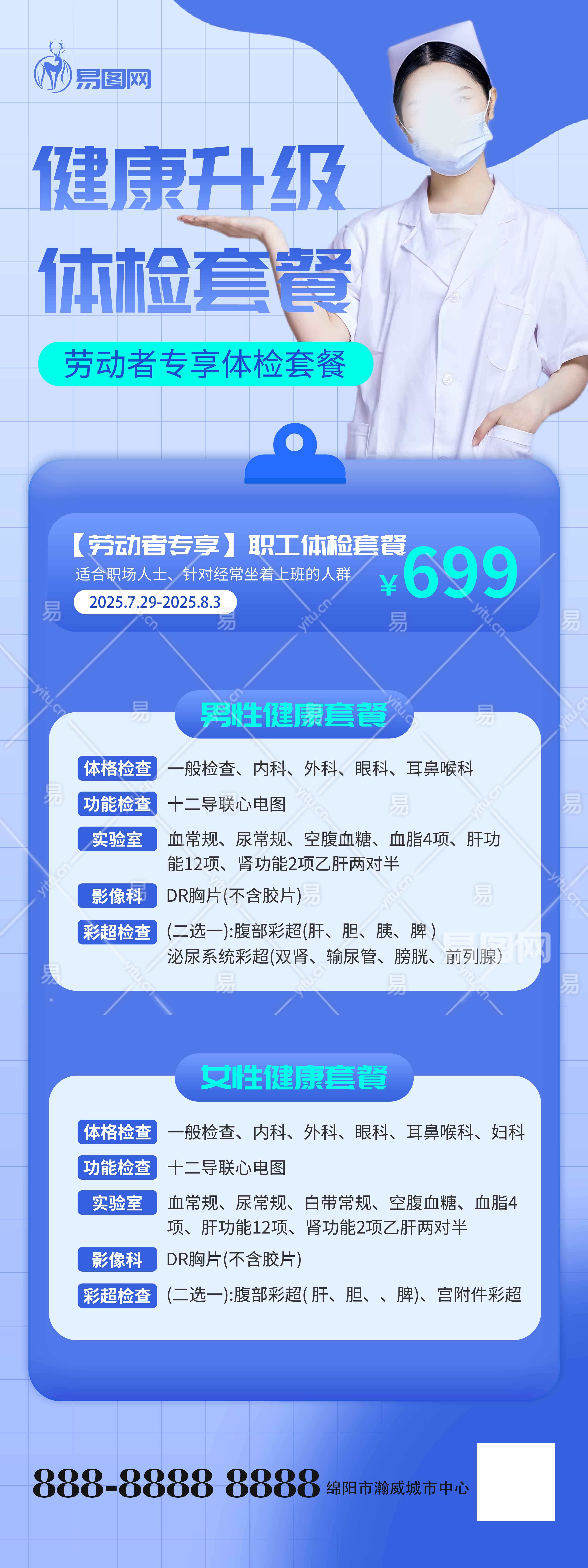 当前的位置:首页 > 广告设计 > 展板/展架 > 医疗卫生展板/展架 > 蓝色定期体检医疗医院宣传展架易拉宝