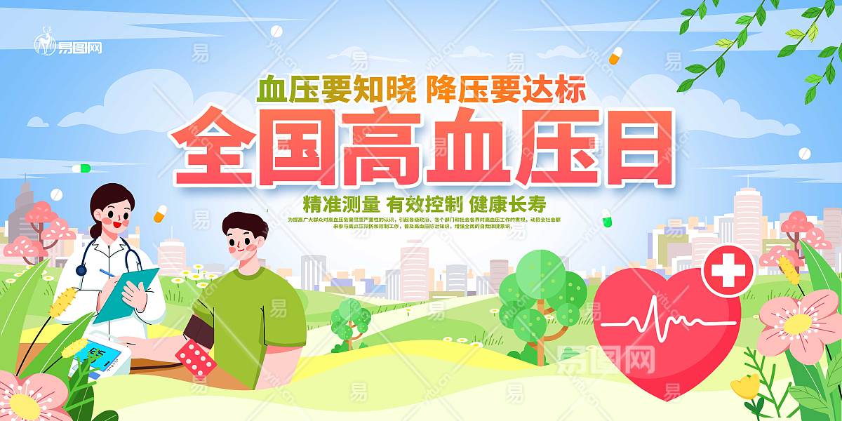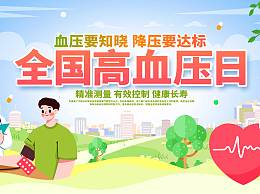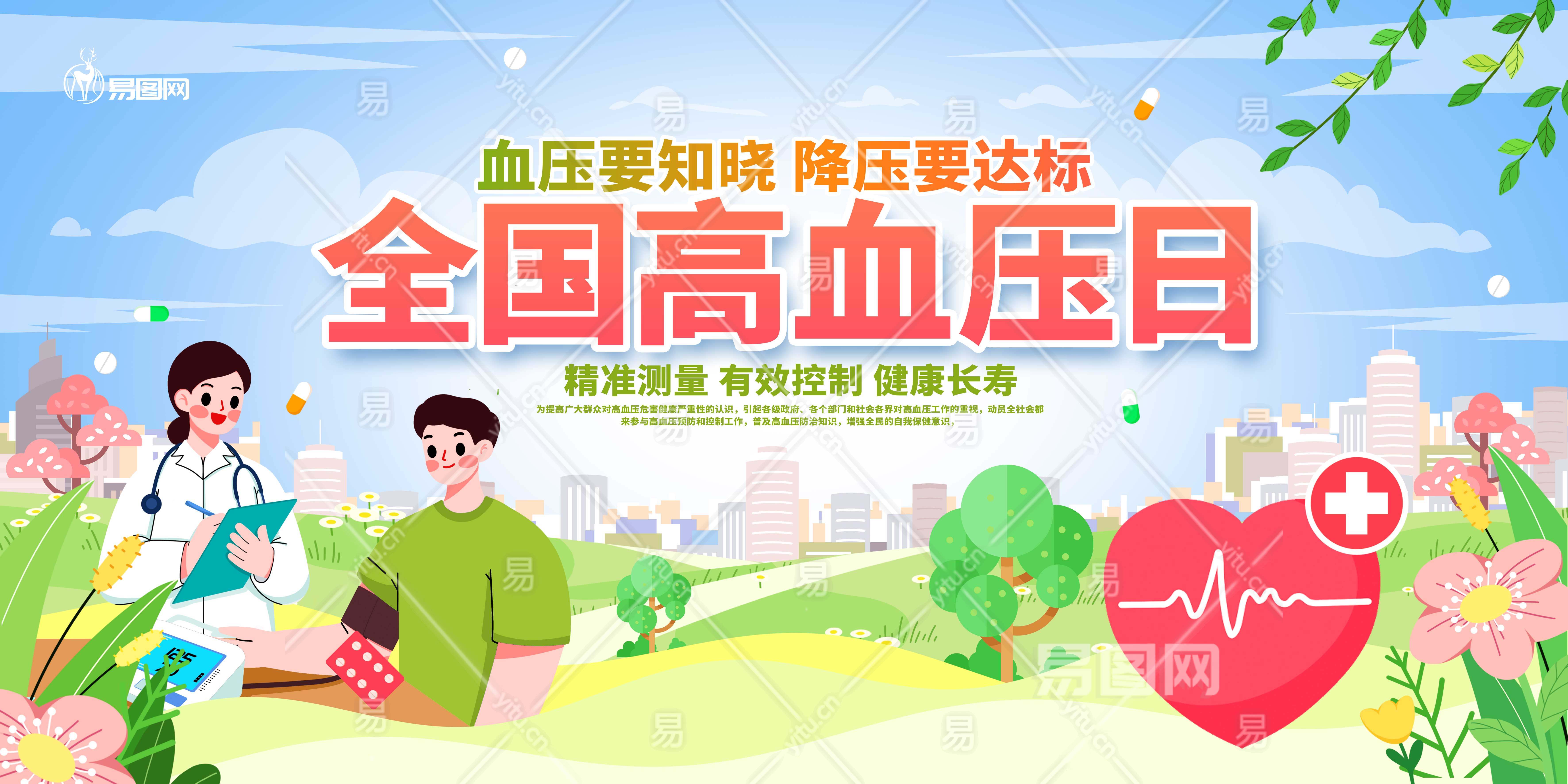 浅蓝绿卡通创意全国高血压日宣传展板设计