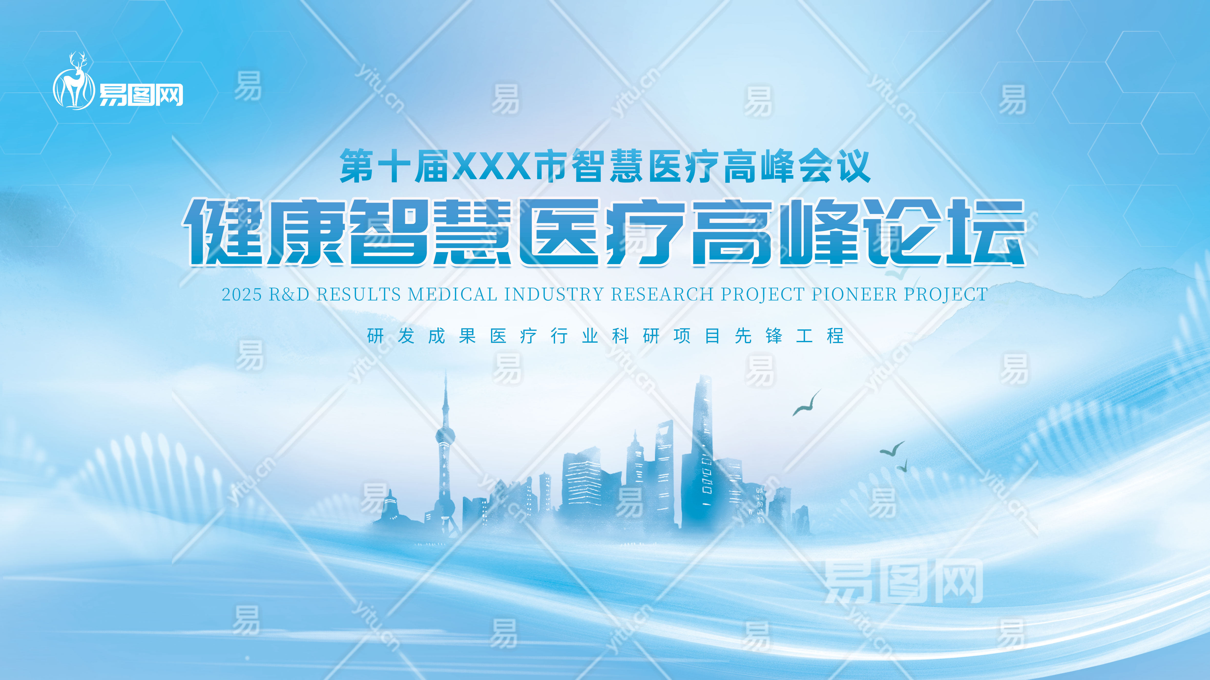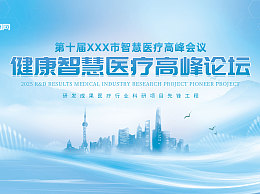 浅水墨蓝色渐变医疗学术交流论坛展板主KV
