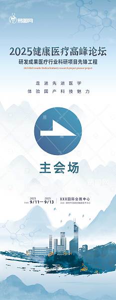 浅水墨蓝白中国水墨医学医疗会议背景易拉宝展架导航牌