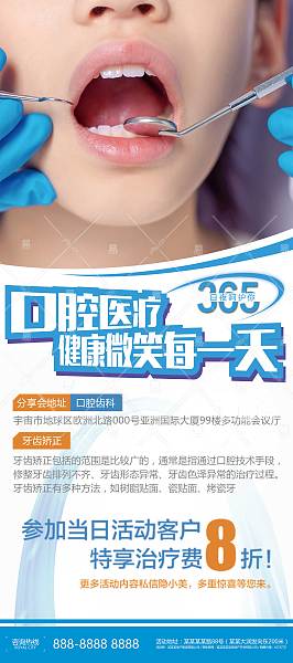 白色蓝健康微笑每一天口腔医疗宣传展架