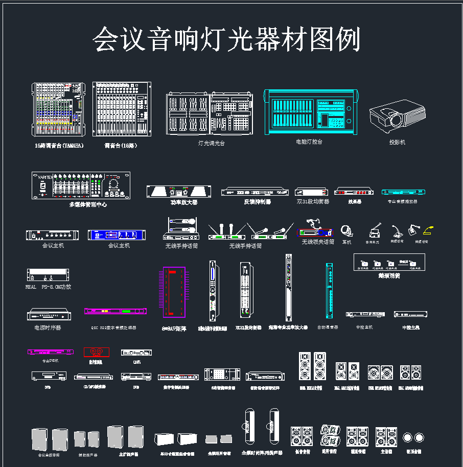 会议音响灯光器材,音响CAD图纸下载