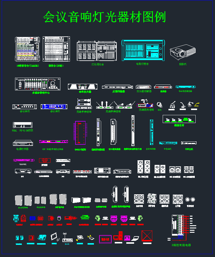 当前的位置:首页 > 室内CAD图纸 > cad > CAD图库 > 机房弱电 > 会议音响灯光器材CAD图库,机房弱电CAD施工图纸下载