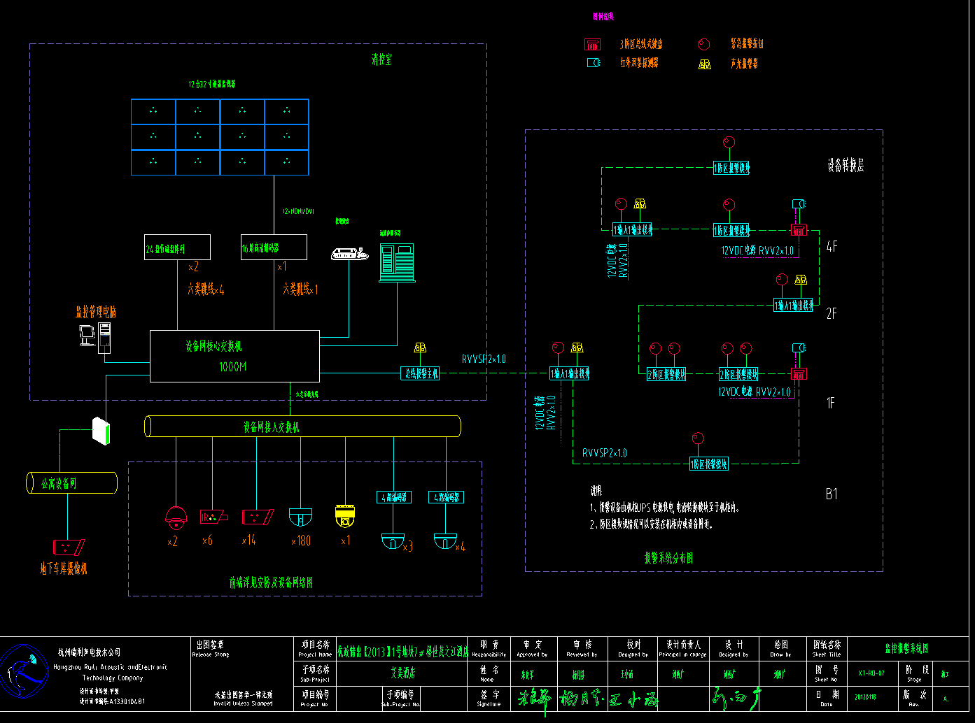 本工程为杭州知名酒店项目,建筑结构为地下三层、地上三十三层,总高度128米,其中酒店部分位于地下三层至十五层。本工程监控中心设置在一层消控室,网络中心及电话总机房位于地下二层。