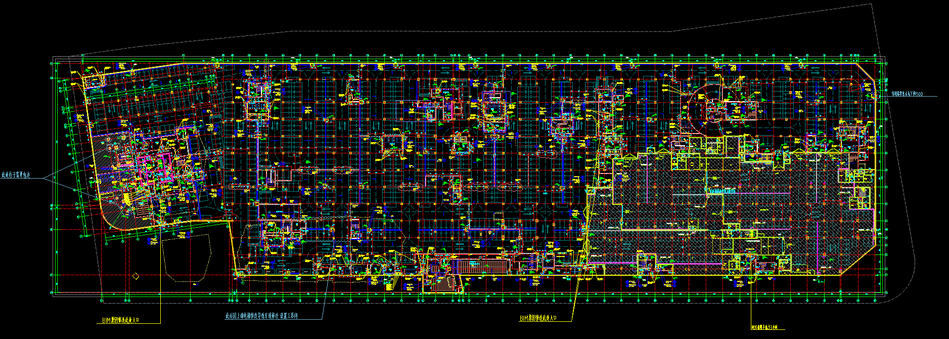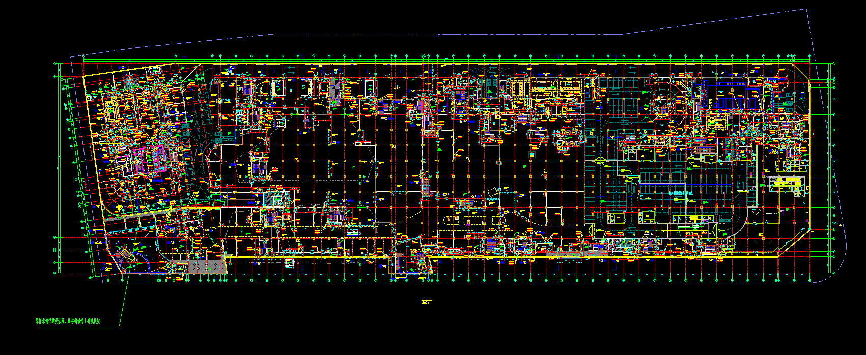 本工程共地下二层。地下一层为超市、零售、餐饮等业态商业;以及机动车库,配套设备用房、库房、物业管理用房、后勤办公等。地下二层,以机动车库为主,配套一些设备用房等。地下一、二层局部车库为人防车库。