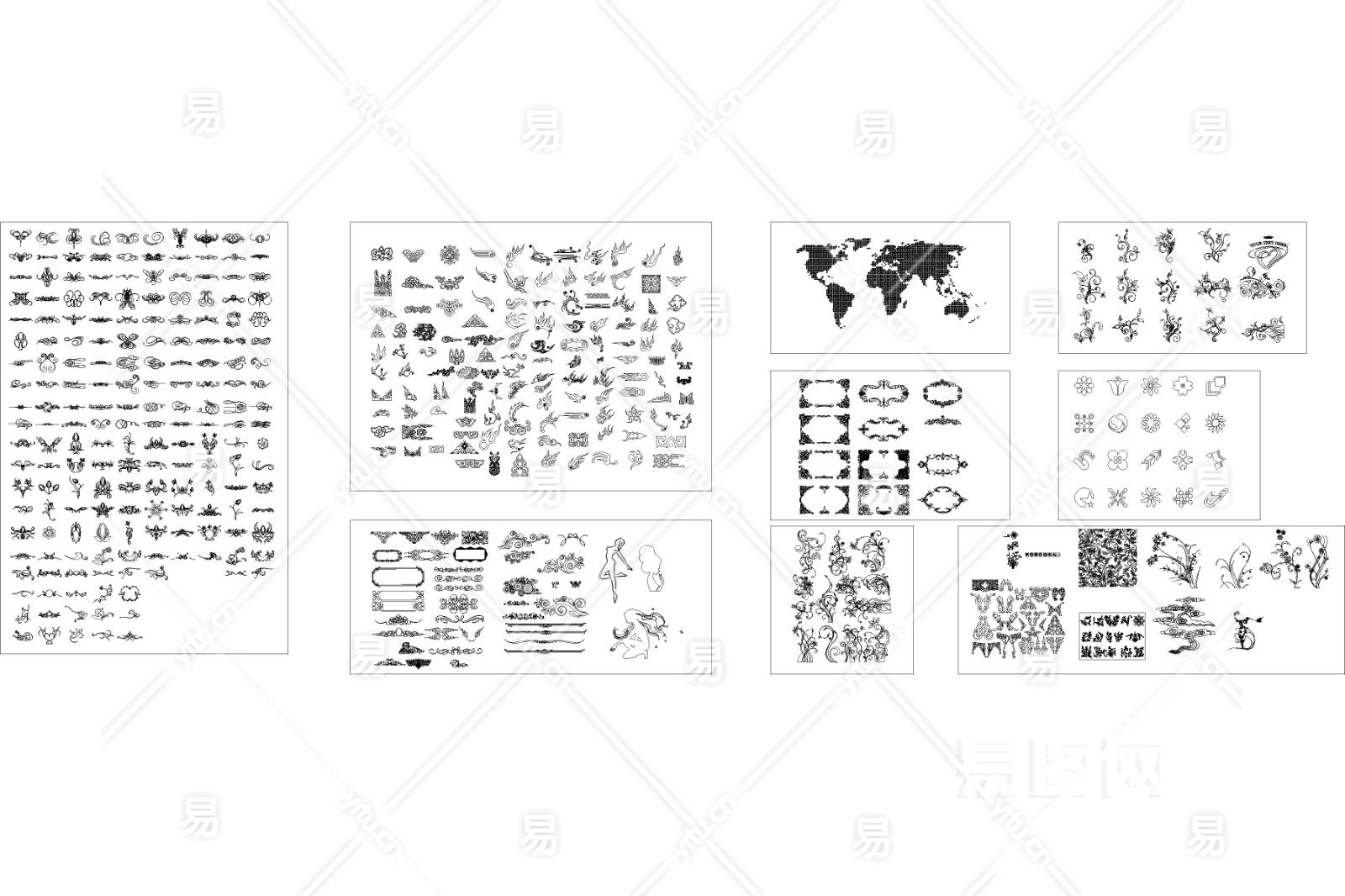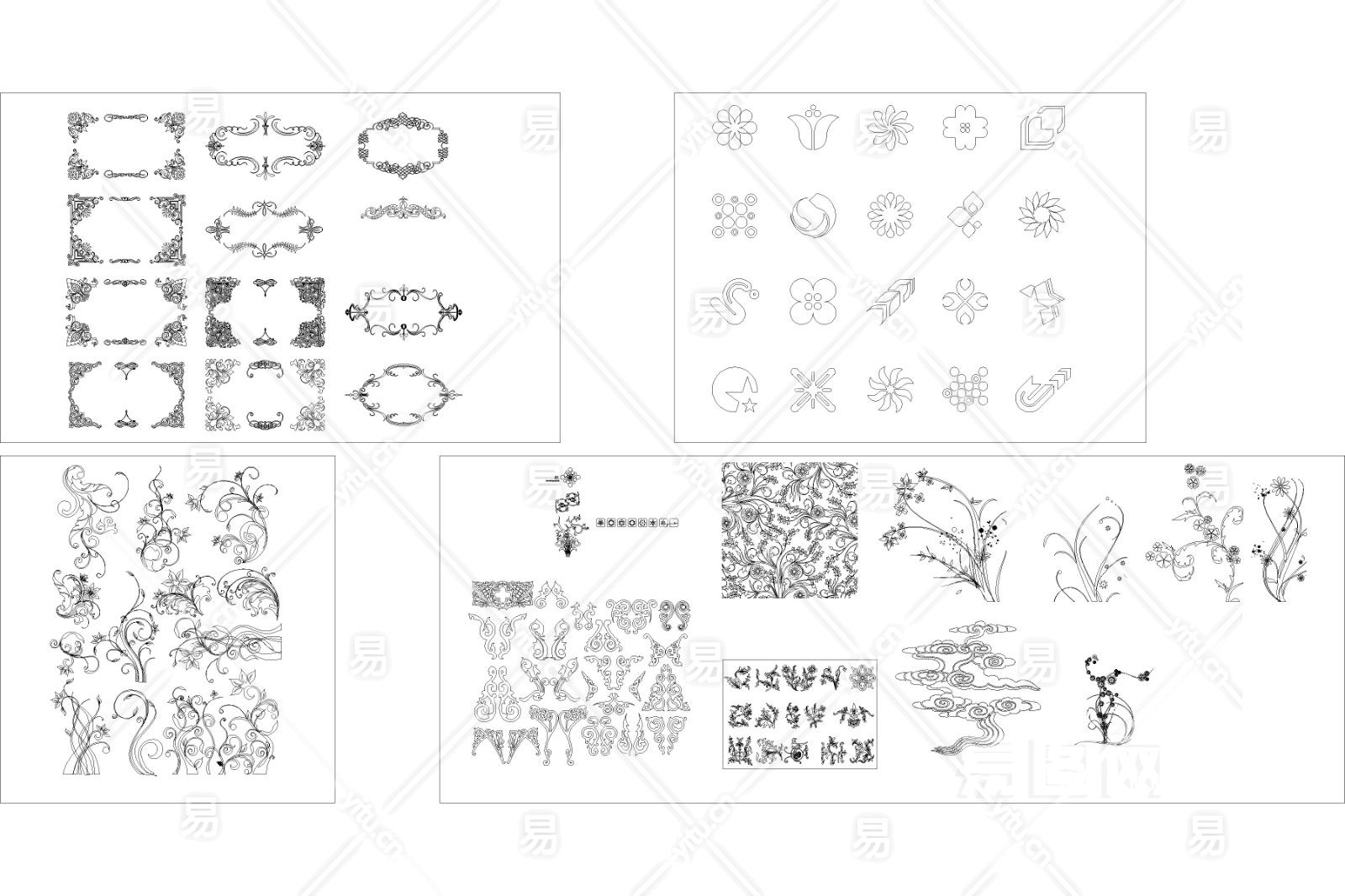 当前的位置:首页 > 室内CAD图纸 > cad > CAD图库 > 图案雕花 > 欧式花纹装饰图库